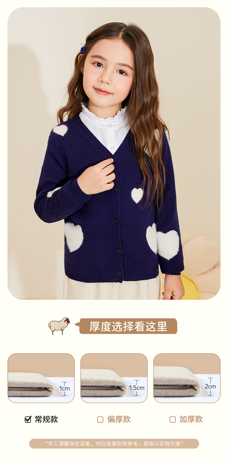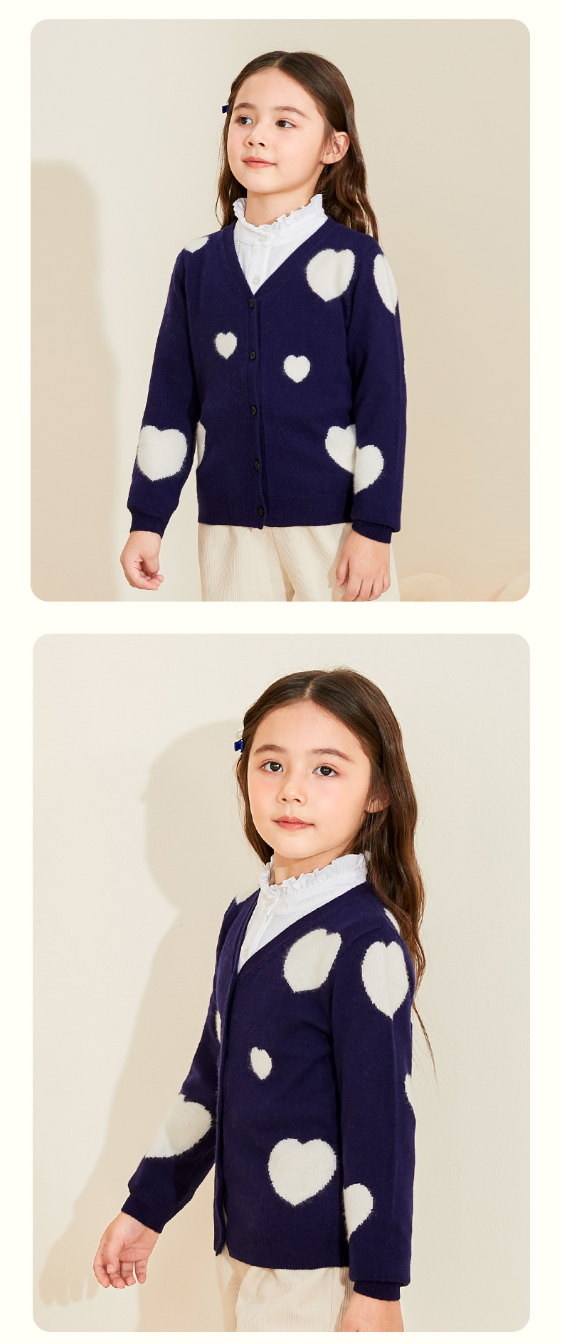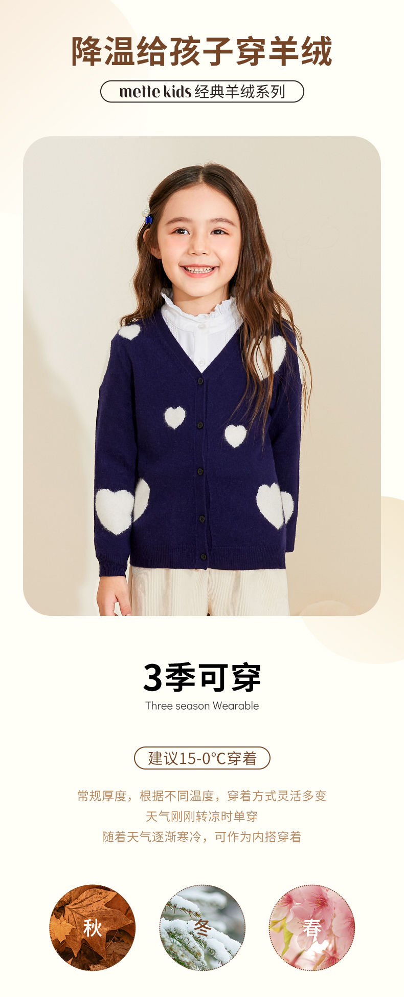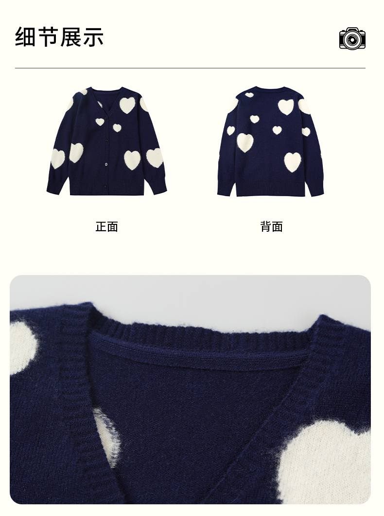 mettekids女童羊绒衫春秋新款v领儿童毛衣长袖爱心童装针织开衫