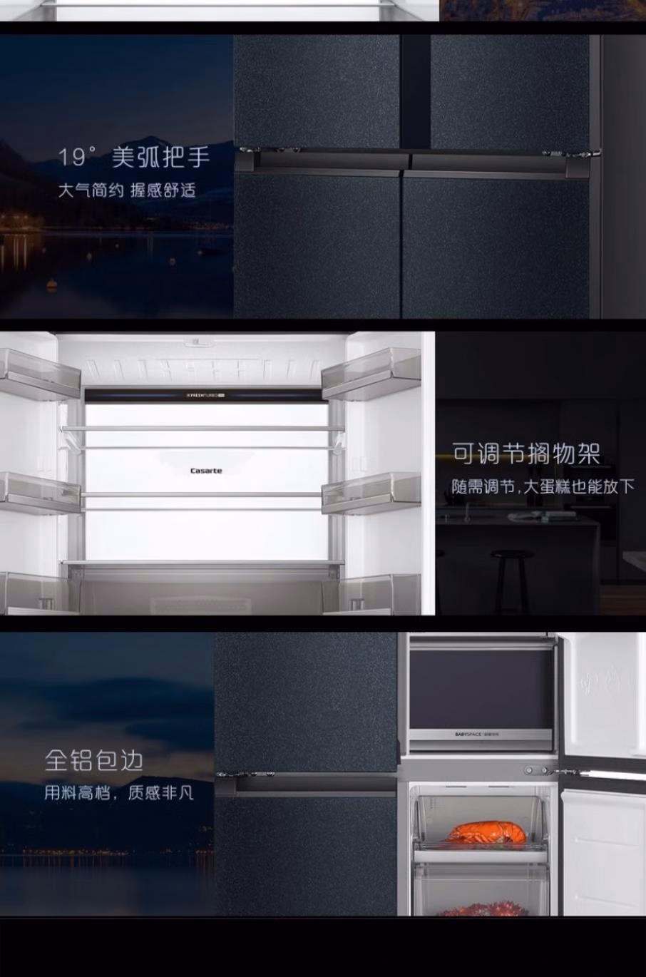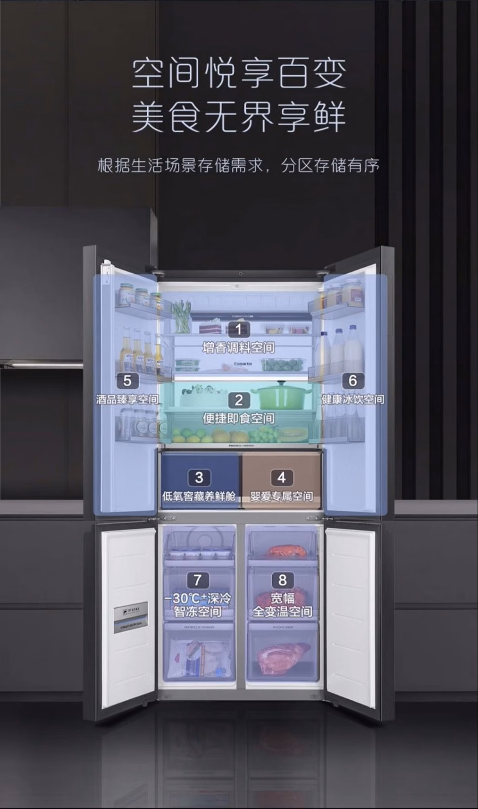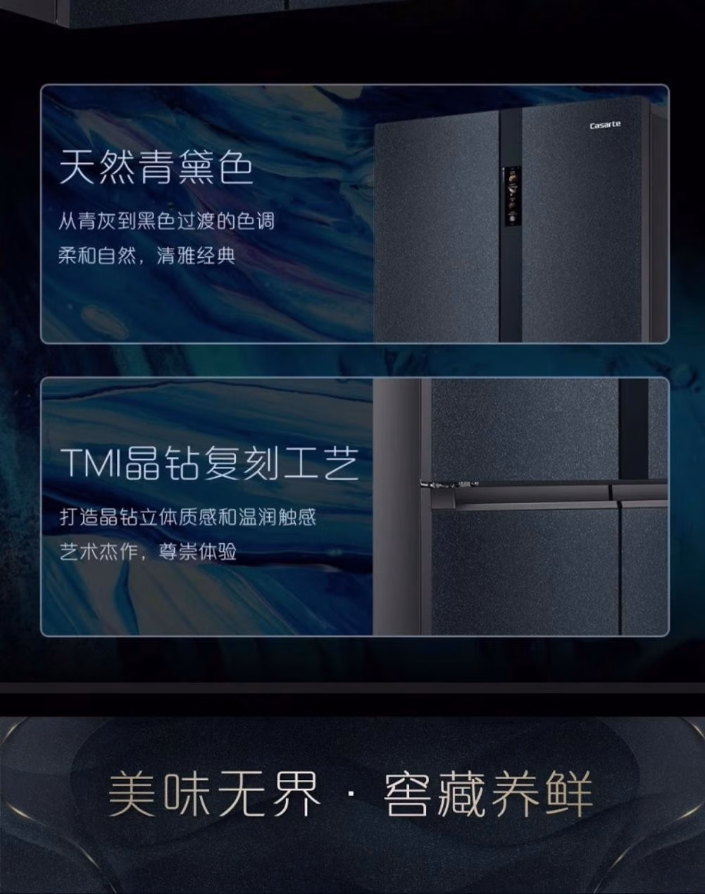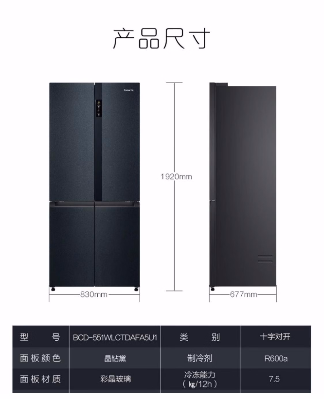 卡萨帝 551升十字对开门冰箱风冷无霜变频零距离自由嵌入低氧窖藏三系统 BCD-551WLCTDAFA5U1晶钻黛