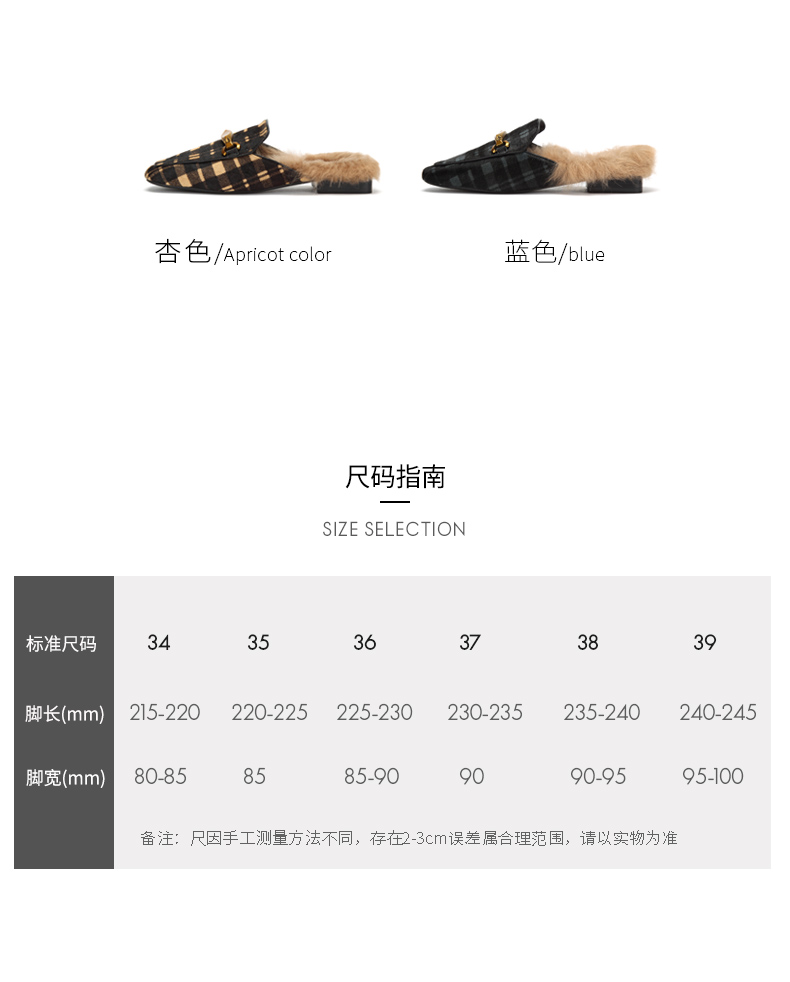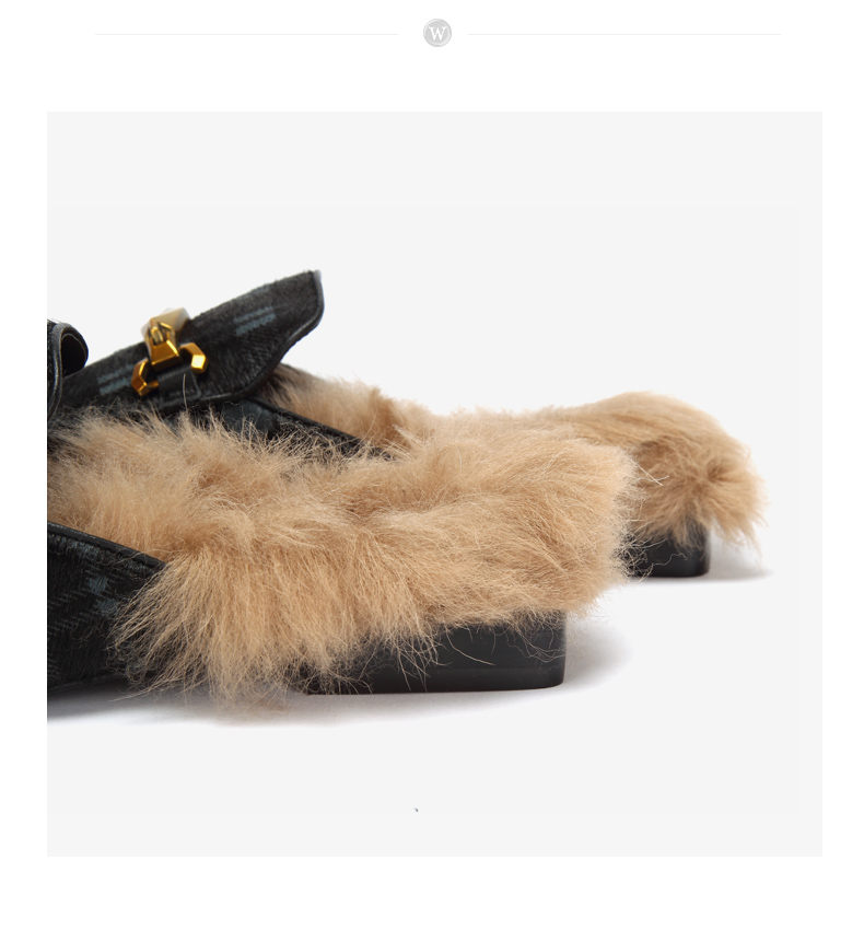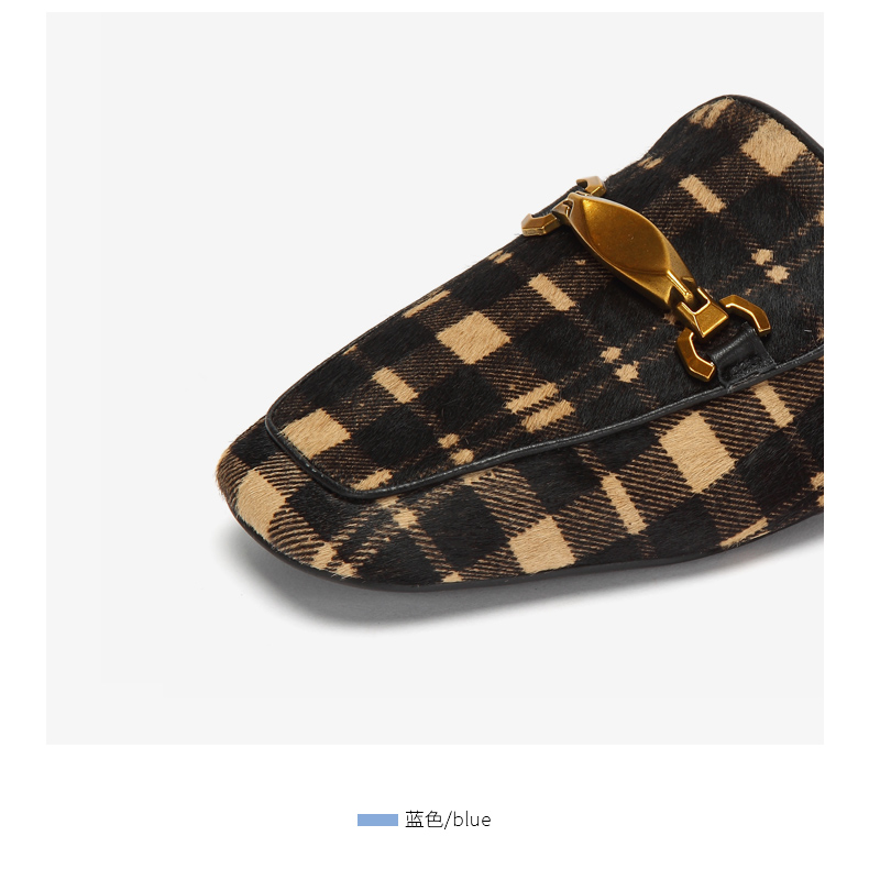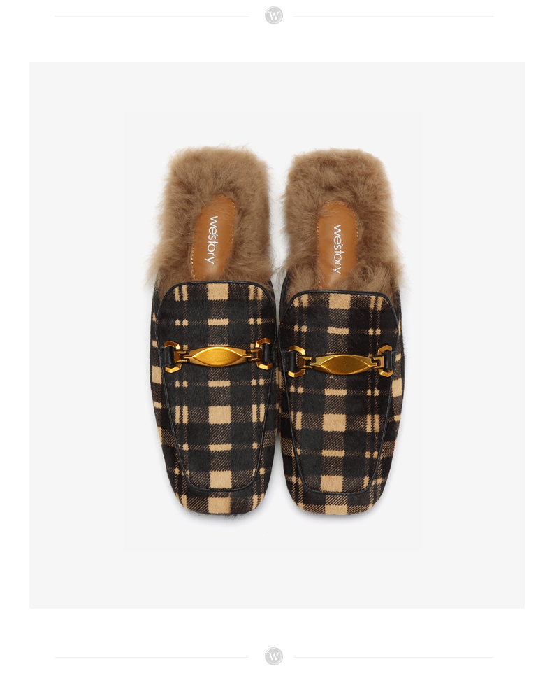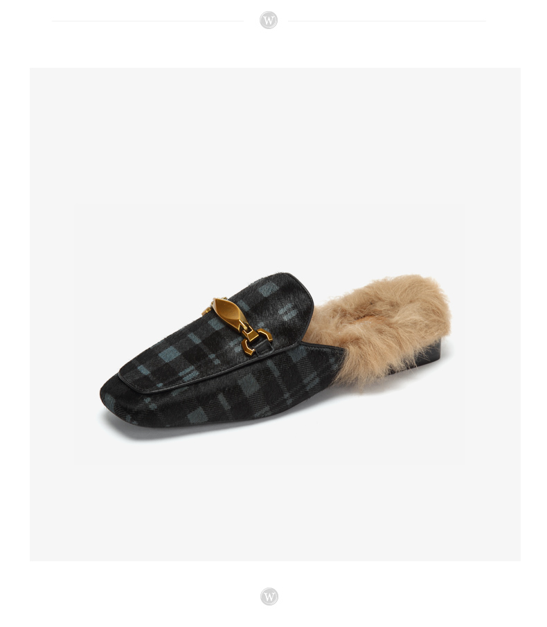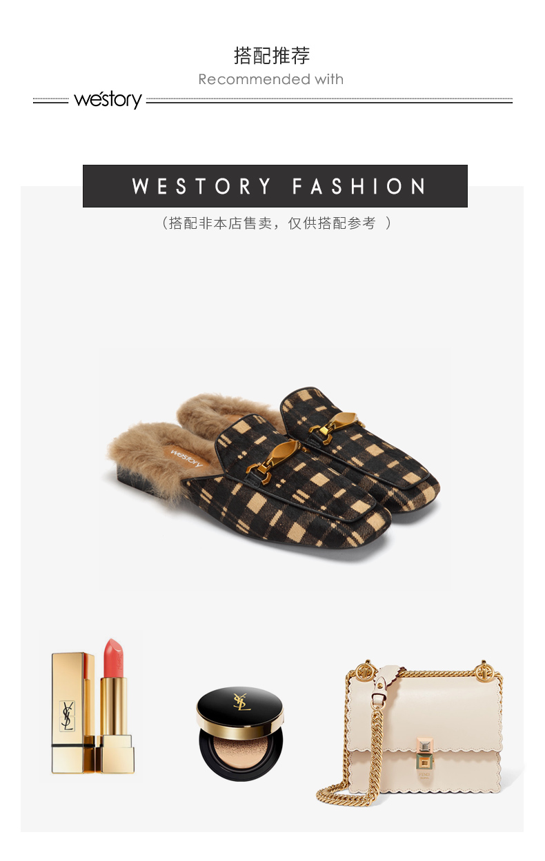 westory商场同款秋季毛毛拖鞋方头低跟格子鞋女W283H70641