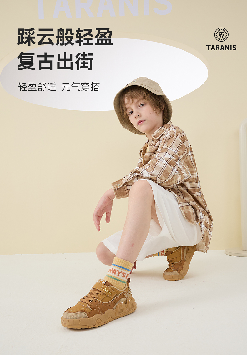 泰兰尼斯kids秋季新款复古耐磨透气防滑时尚男女童中性复古板鞋 T02D5C6721