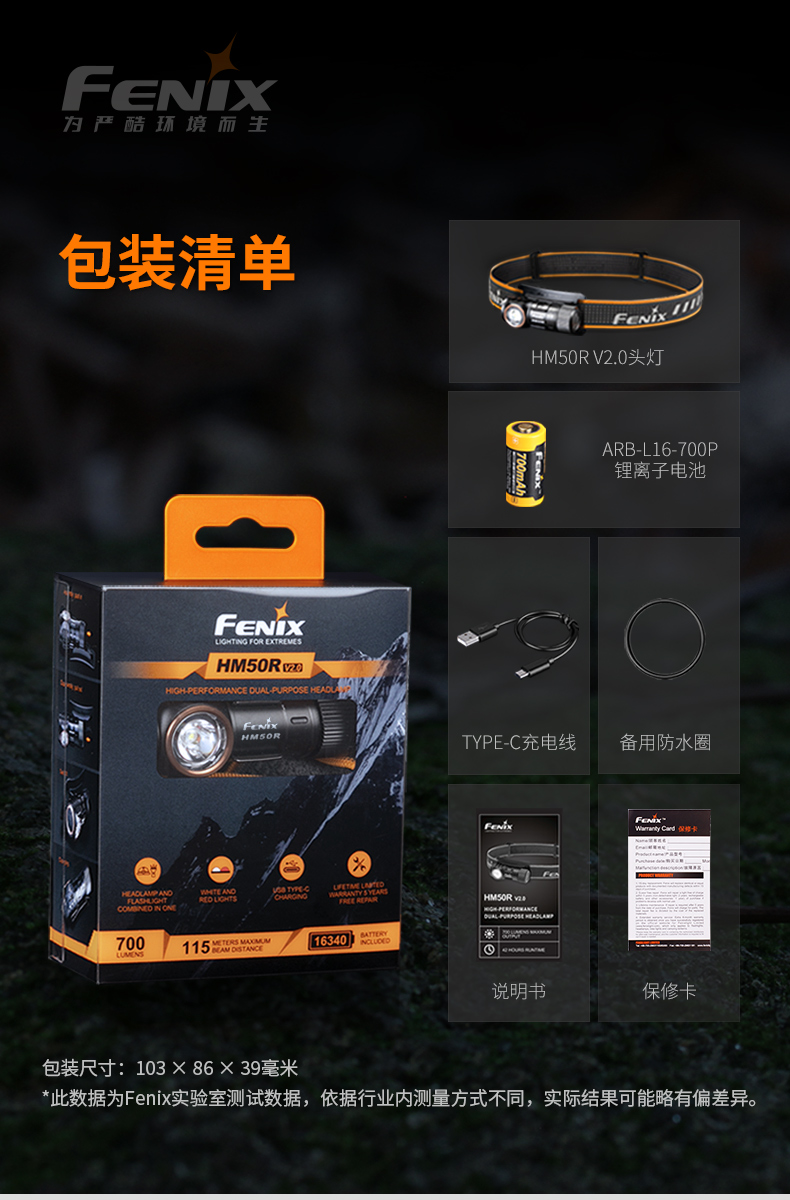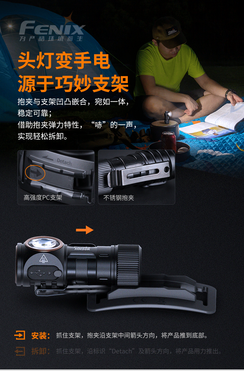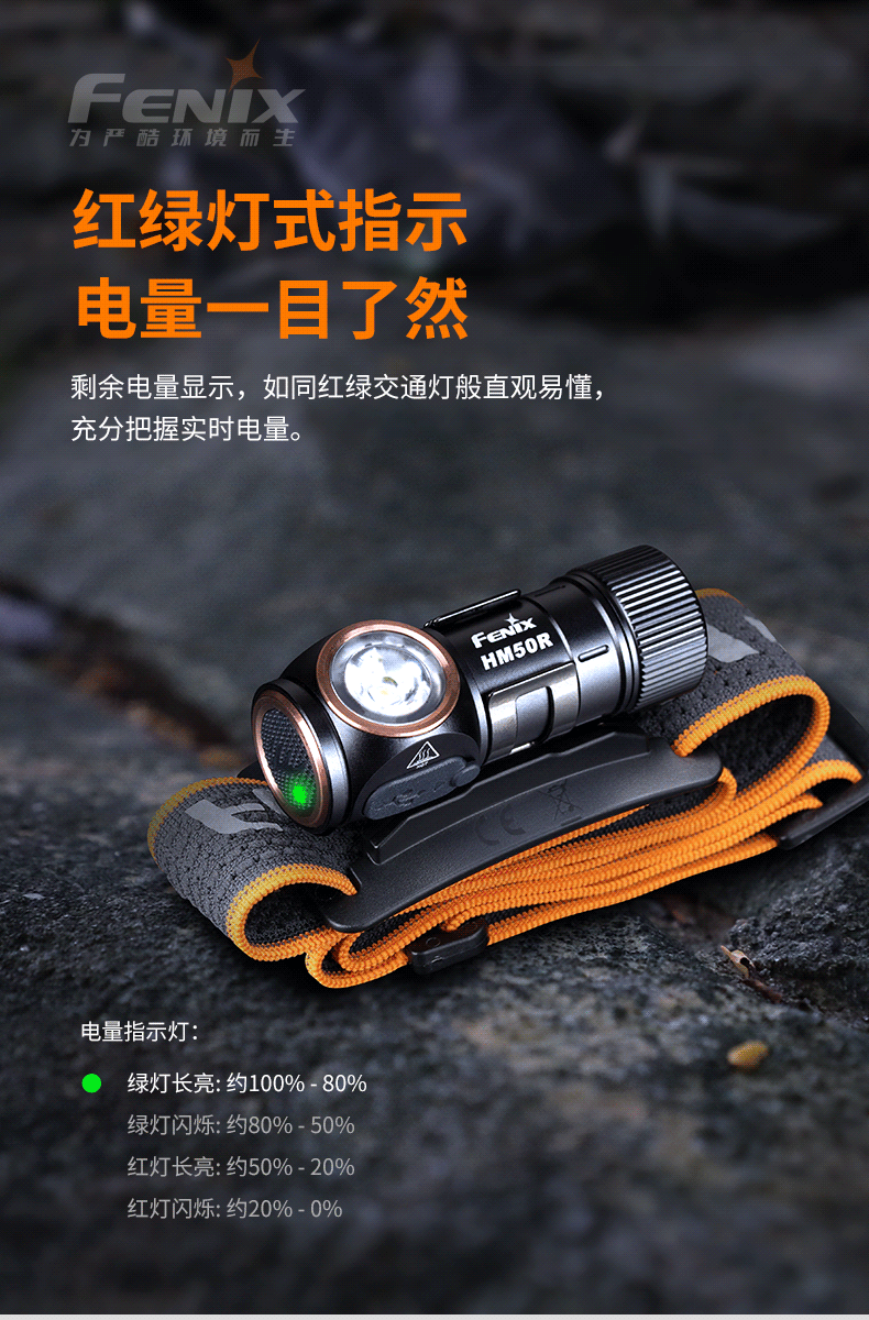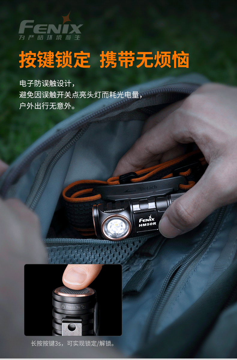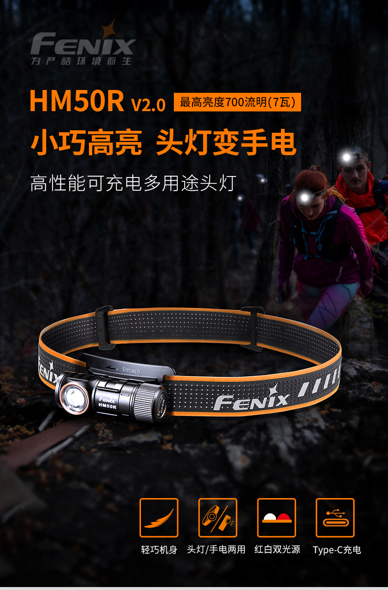 Fenix菲尼克斯 HM50R V2.0户外头灯USB充电头戴式夜跑轻型强光头灯