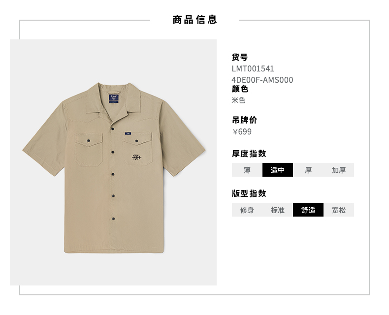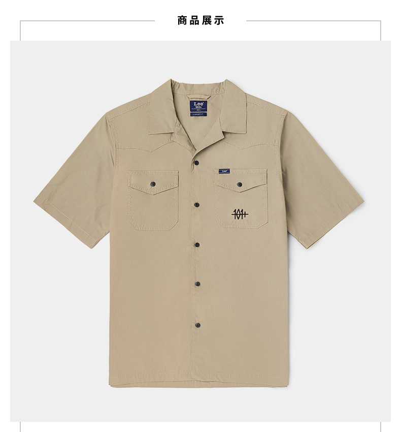Lee商场同款22春夏新品101+舒适多色复古男短袖衬衫LMT0015414DE