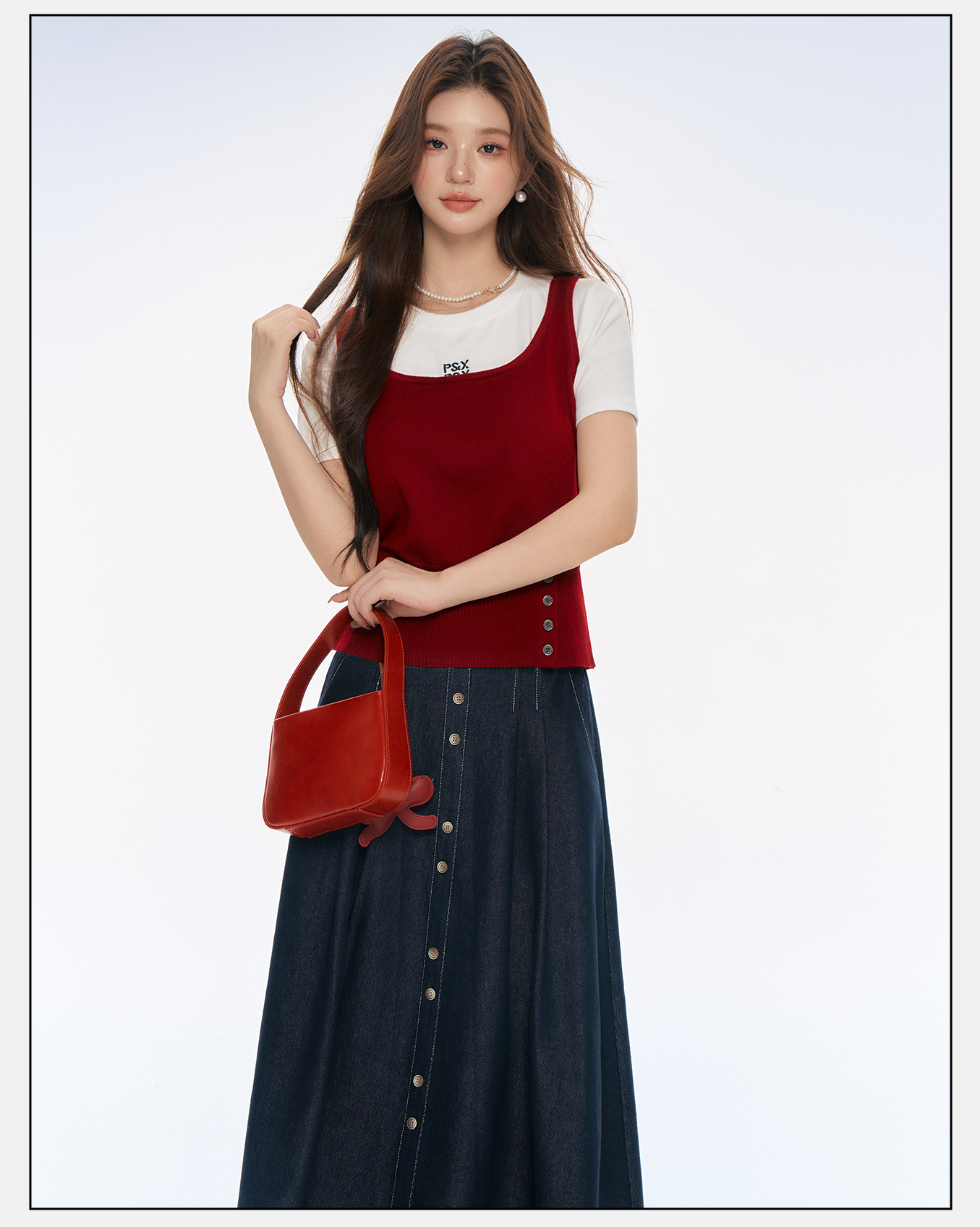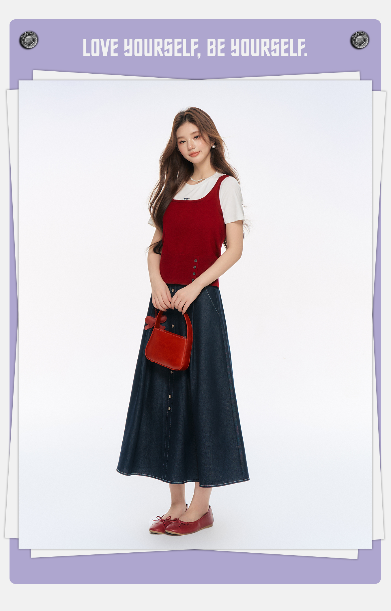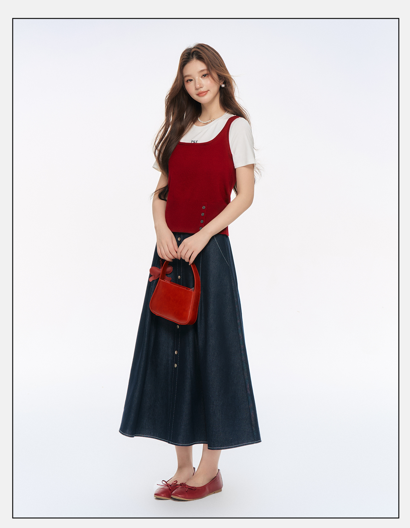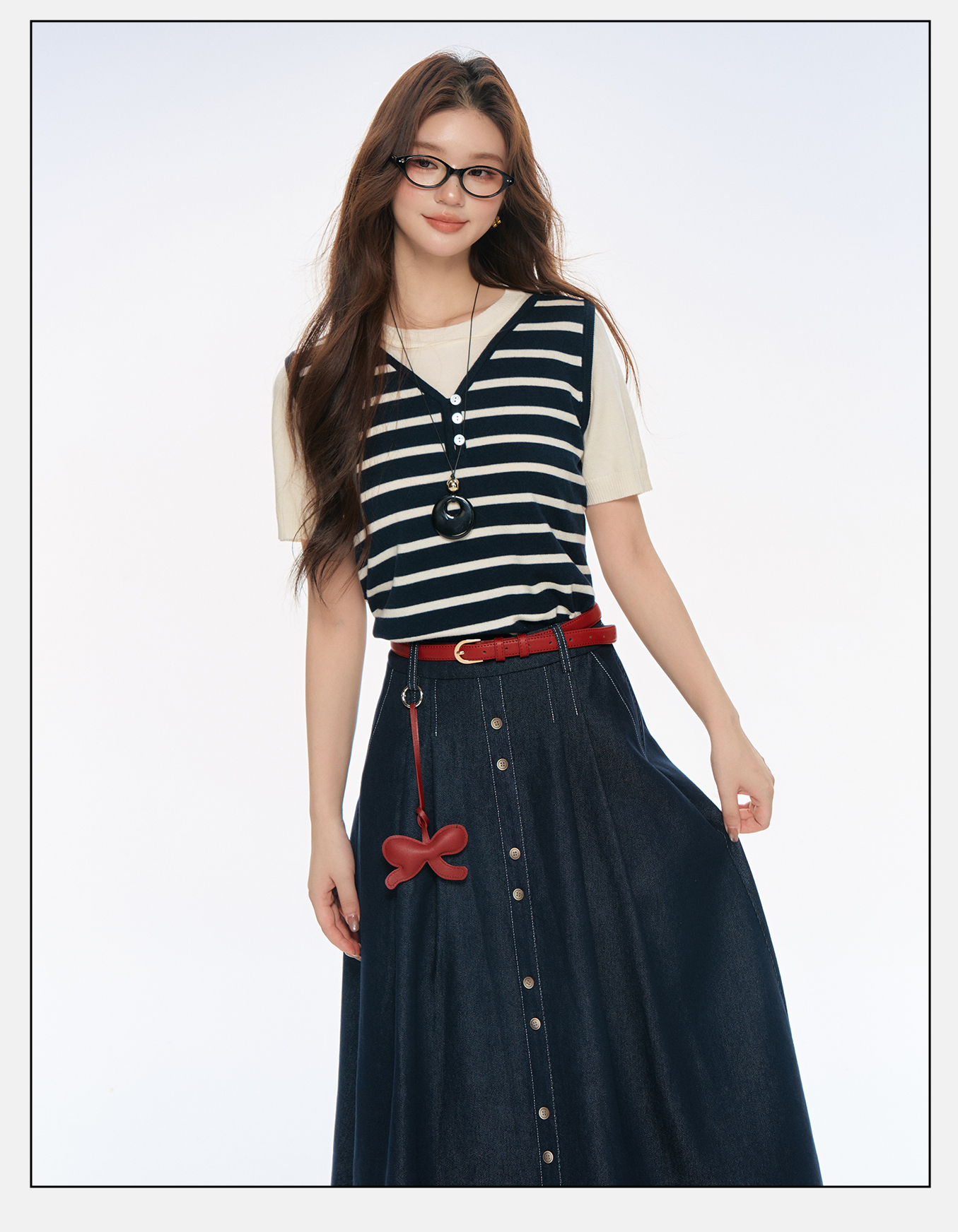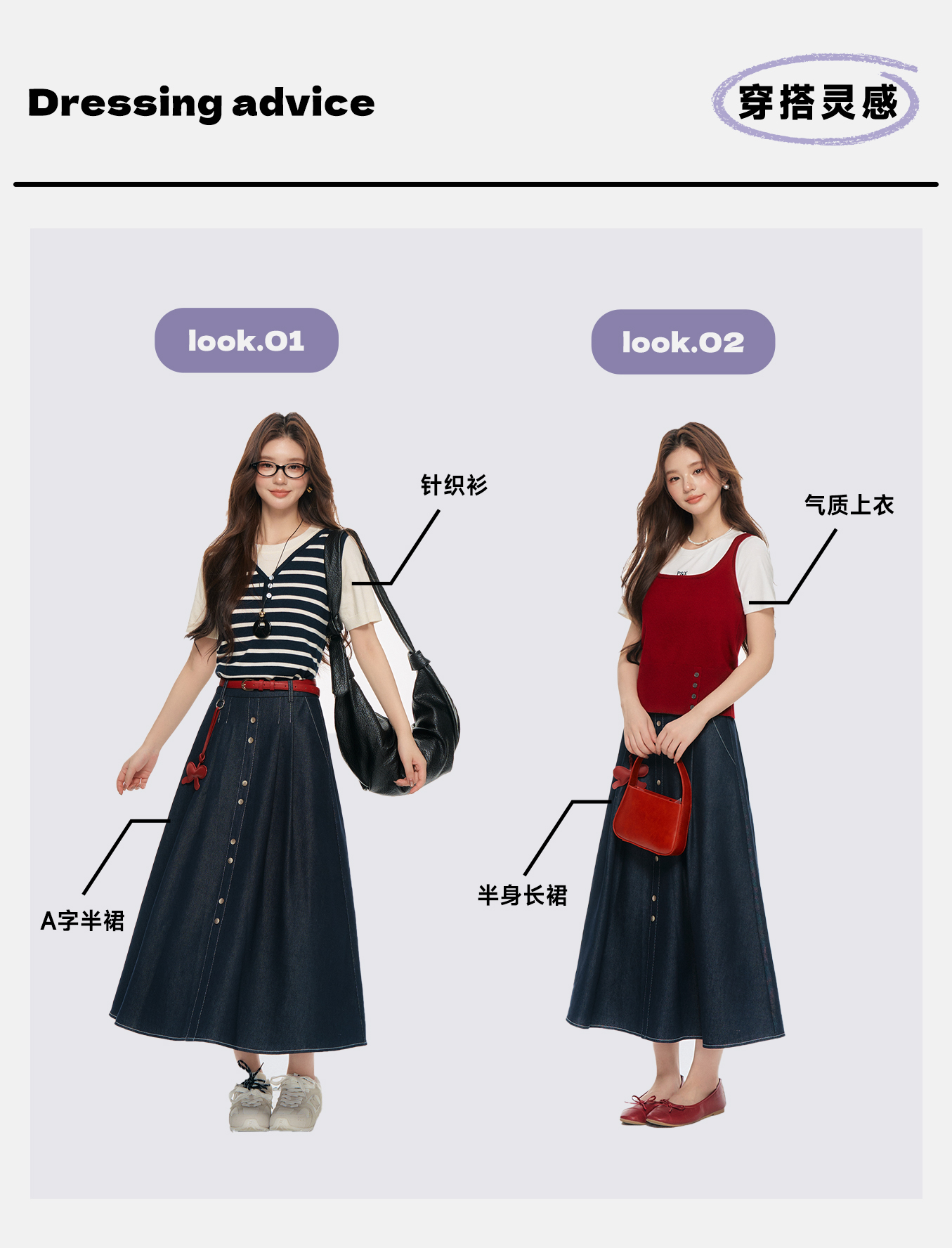 P&X设计师女装2025秋季新款通勤A字牛仔半身长裙 825307102 蓝色