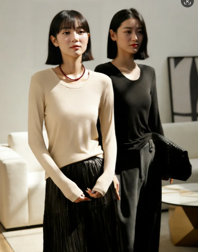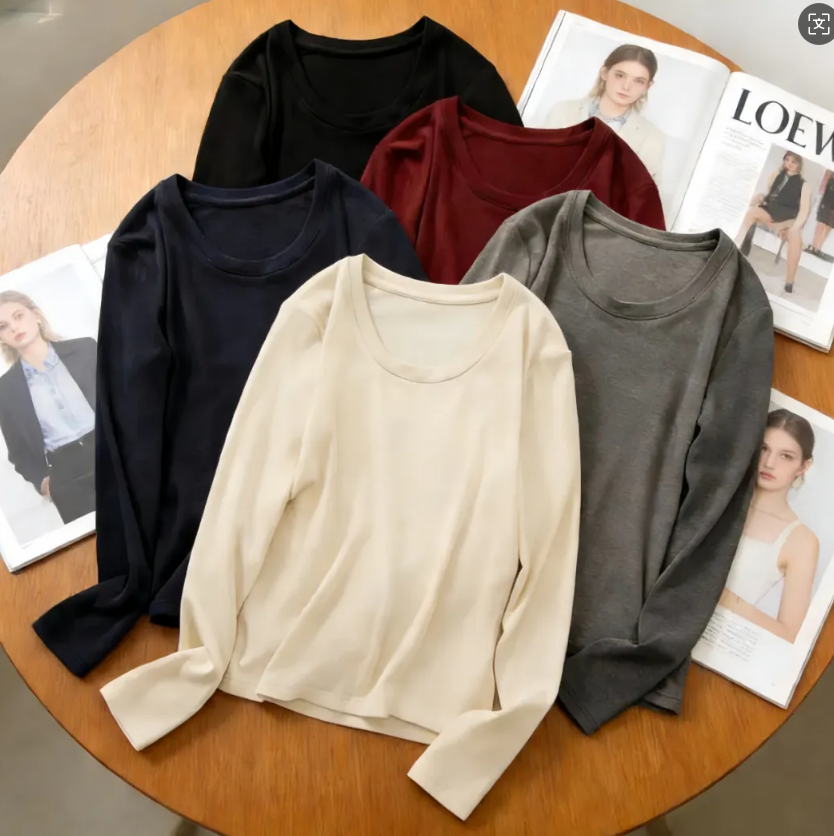 老米优品🎈春日好搭子~ 舒服到上瘾!《蚕丝+羊毛肌底打底衫》轻柔修身水滴打底衫!羊毛桑蚕丝 圆领/水滴U领 打底衫 多色可选