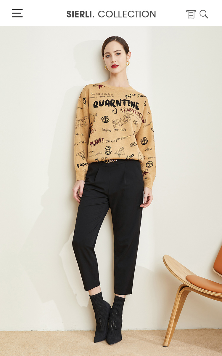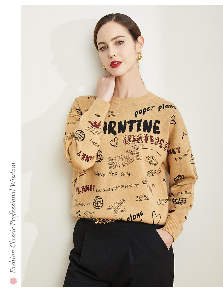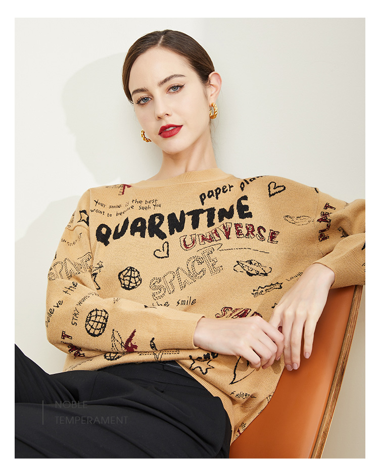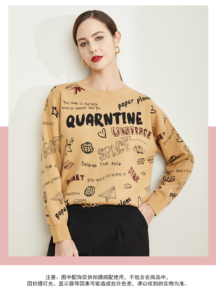 NC60M瑟俪(斯尔丽高端)舒适柔软低圆领字母拼接毛衣针织衫