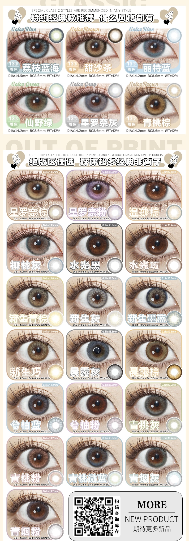 sntty年抛活动·0-1000度(有525/575)·灰奇奇&萌豆豆&水啵啵&椰椰派&水晶石&泪光石&青桔梗&蓝柑橘&荔枝蓝海&甜沙茶&丽特蓝&仙野绿&星罗奈&青桃棕&温莎棕&椰林灰&水光&新生