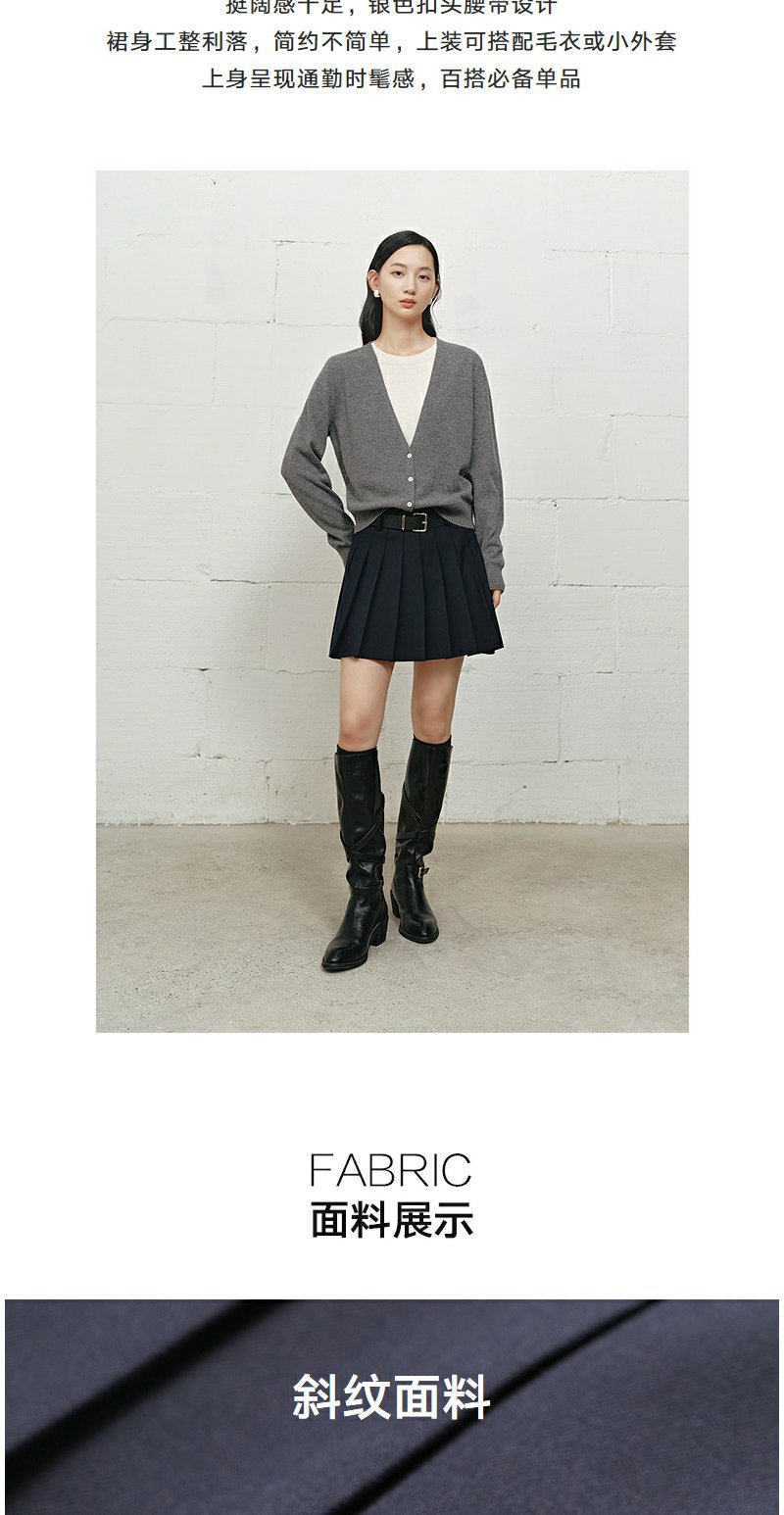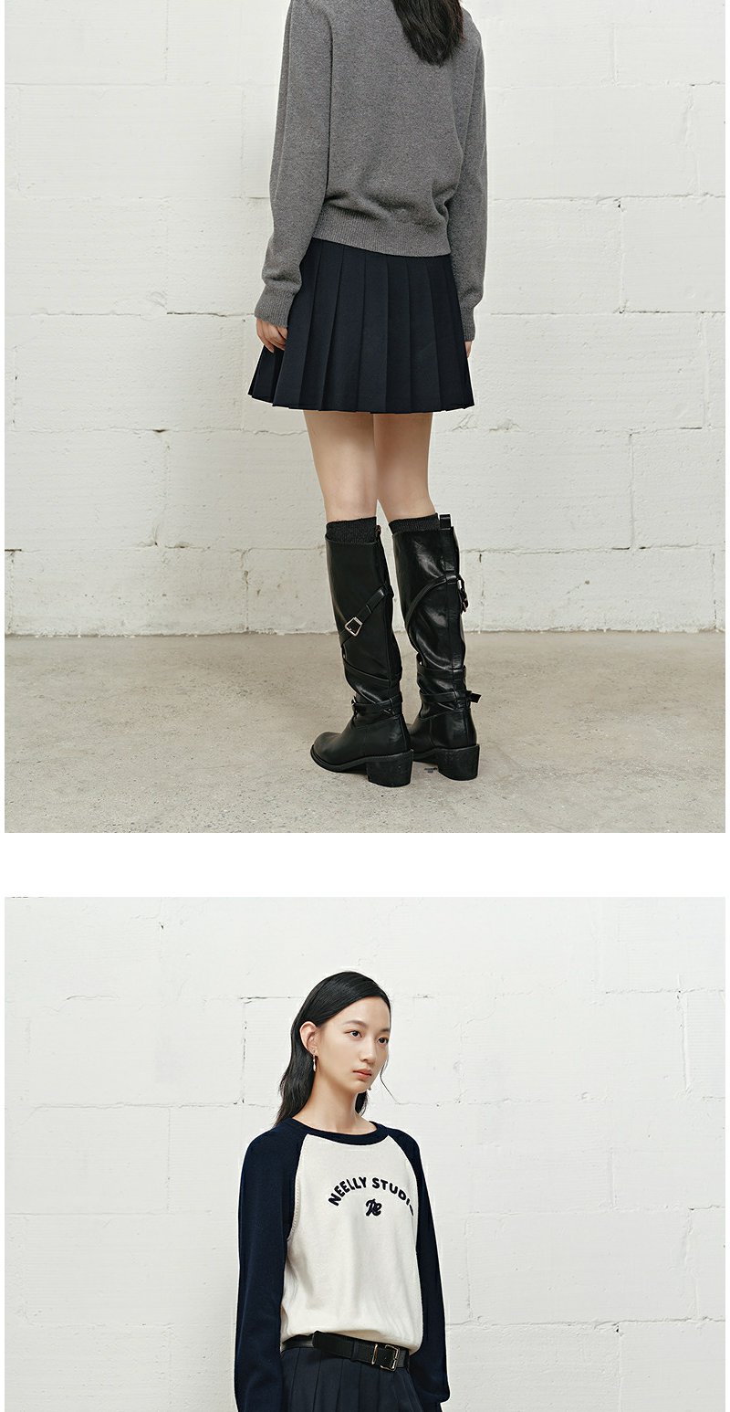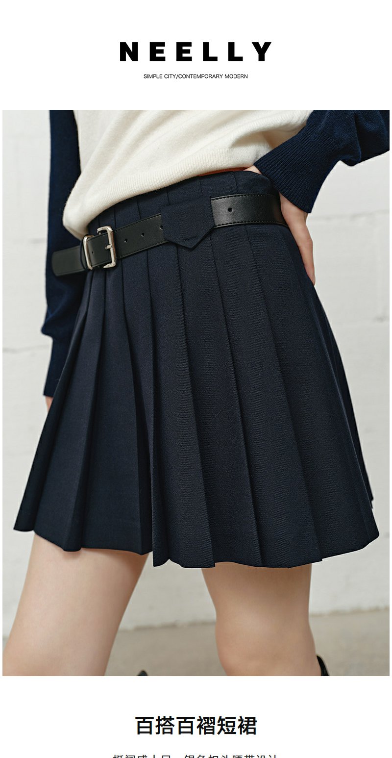 NEELLY纳俪商场同款冬季新款高腰显瘦百褶裙女学院风时髦百搭短裙N25101E01018