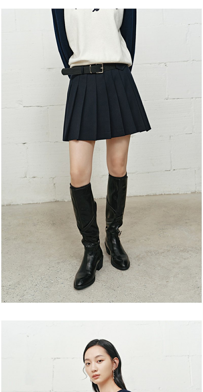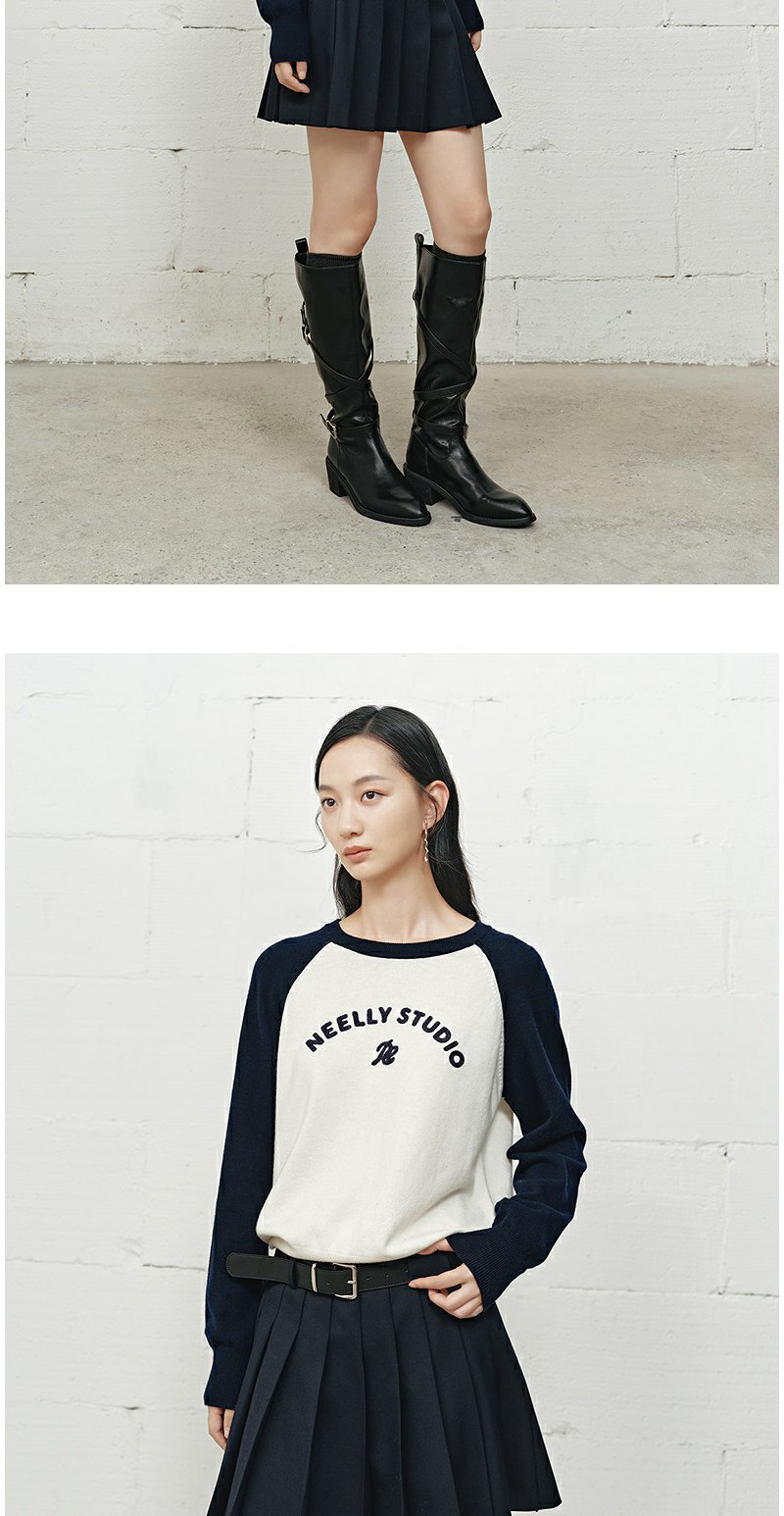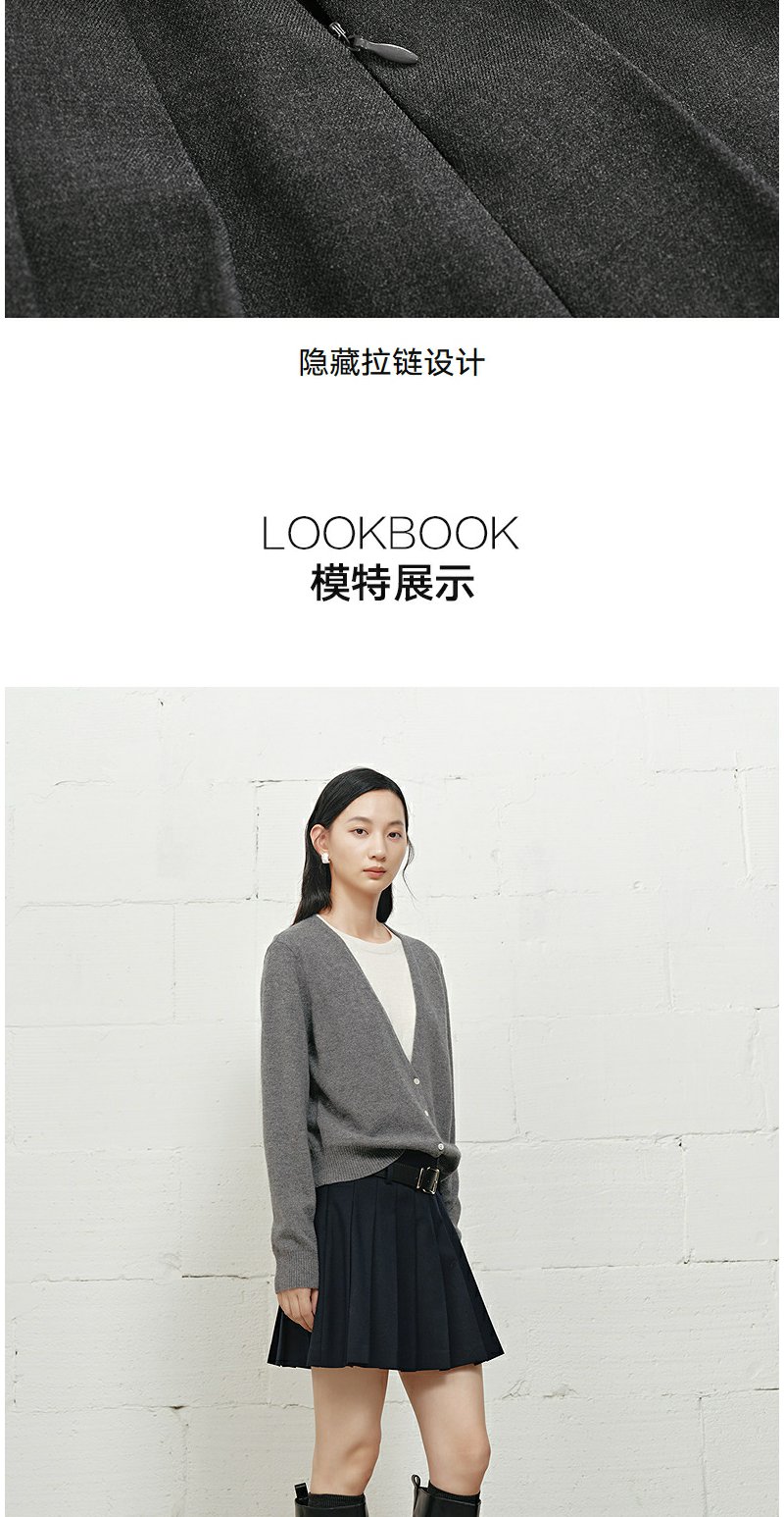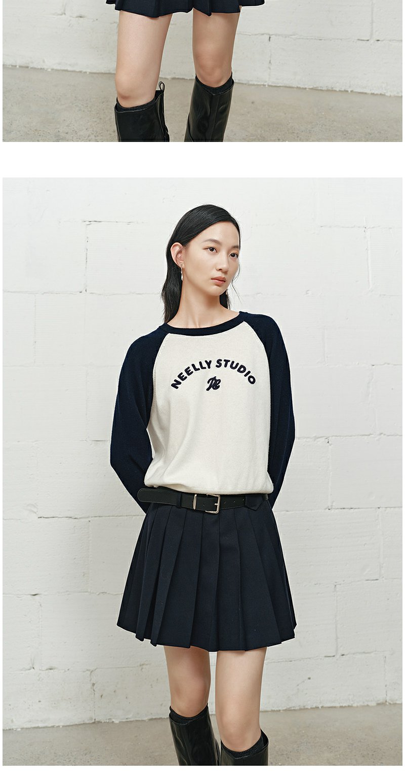 NEELLY纳俪商场同款冬季新款高腰显瘦百褶裙女学院风时髦百搭短裙N25101E01018