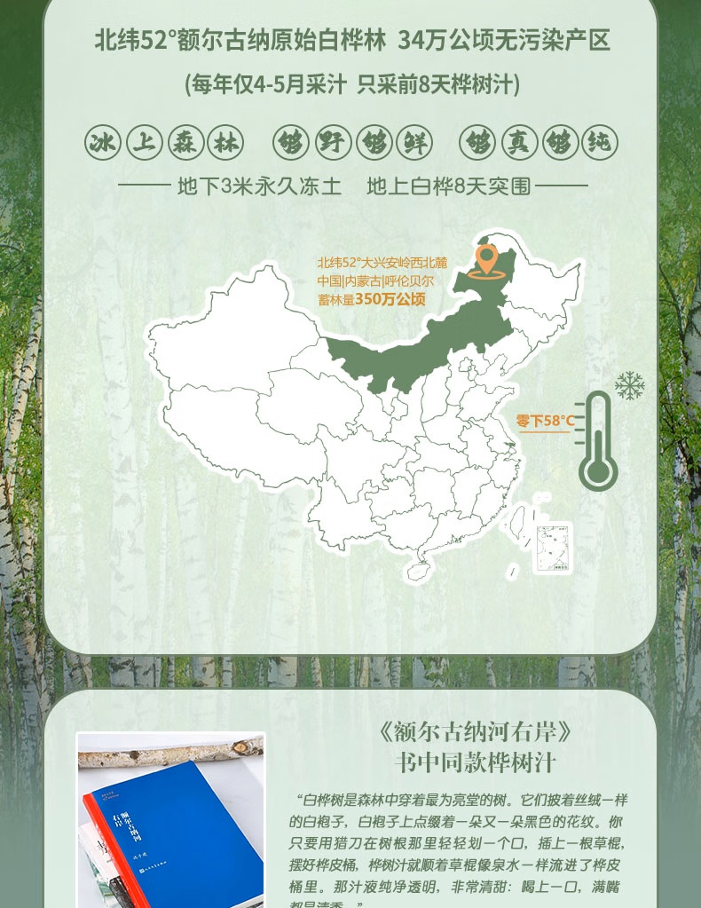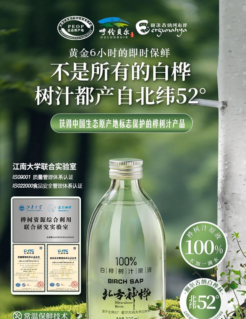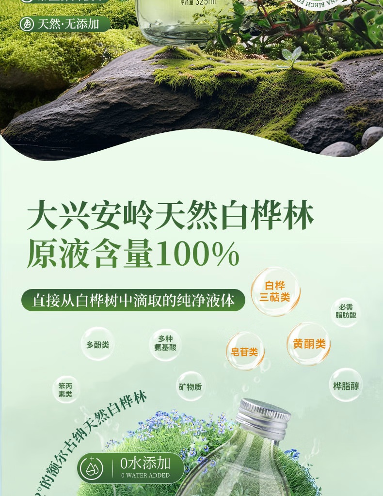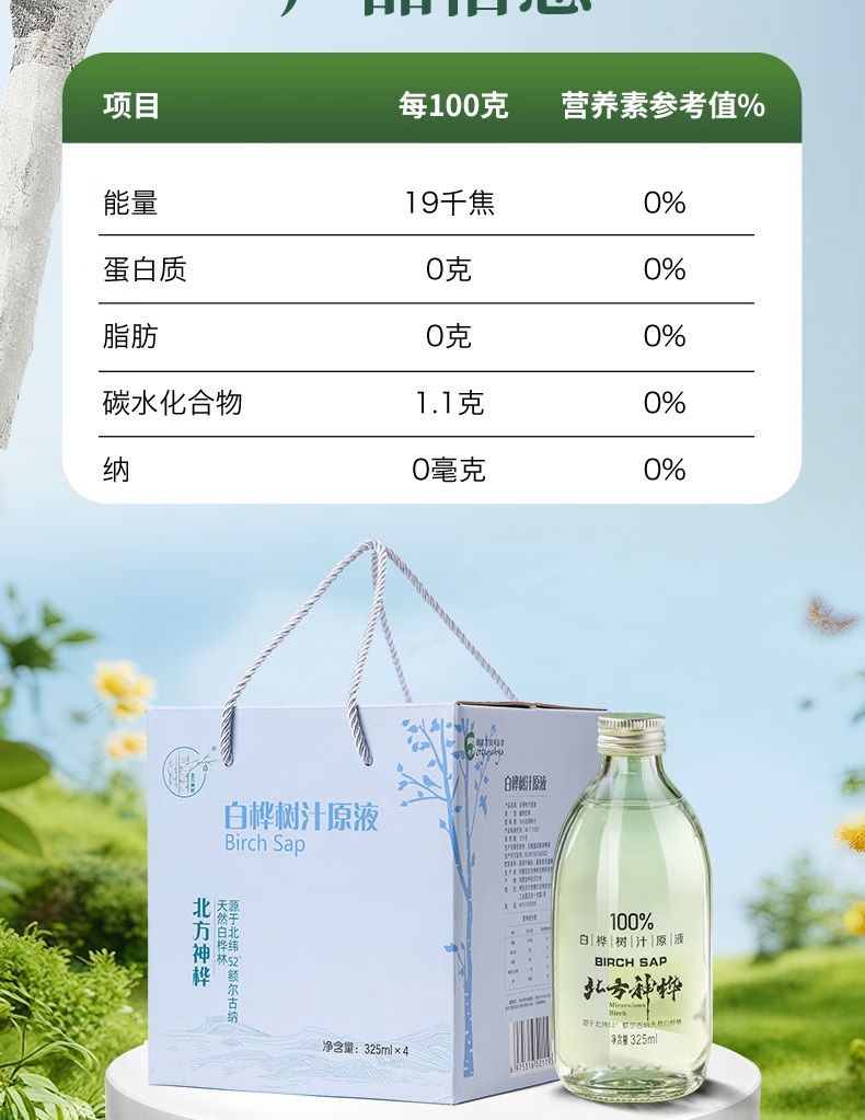 北方神桦 白桦树汁100%原液野生桦树汁水原汁植物饮料 【325ml*4瓶】1箱