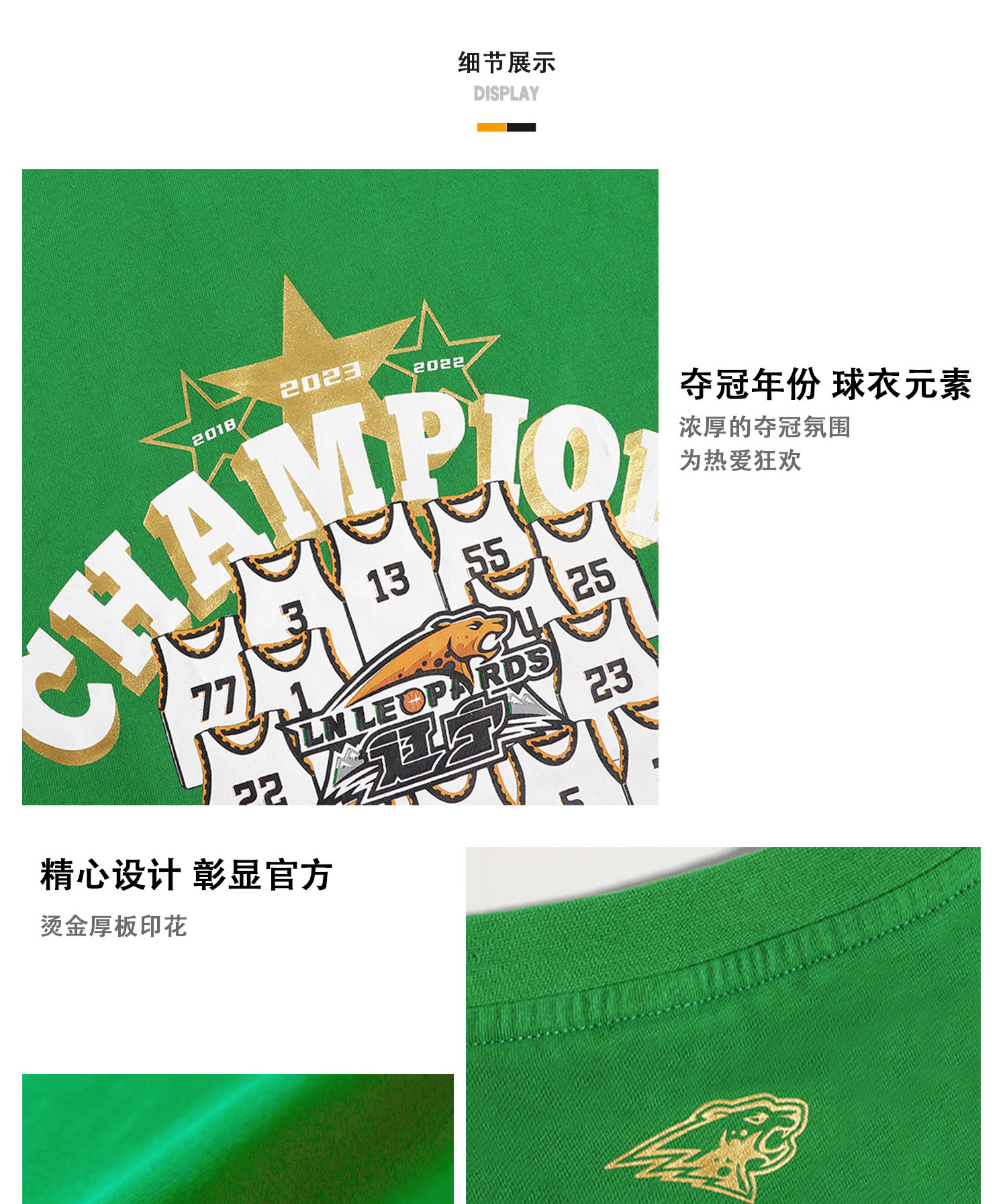 辽宁飞豹男篮官方商品丨辽篮本钢队球衣款冠军T恤夺冠纪念短袖T恤