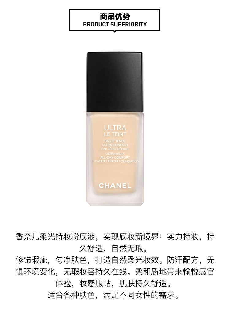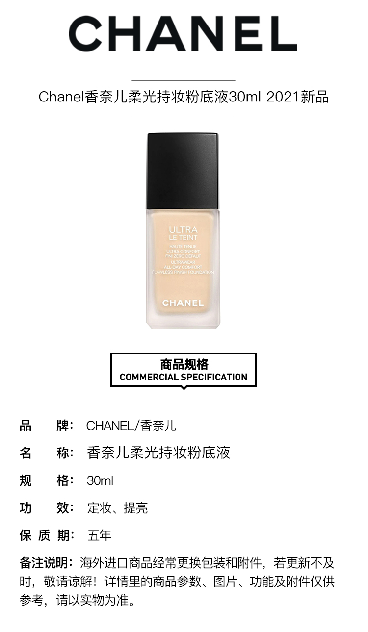 Chanel/香奈儿柔光持妆粉底液30ml 2021新品 小磨方遮瑕雾面控油