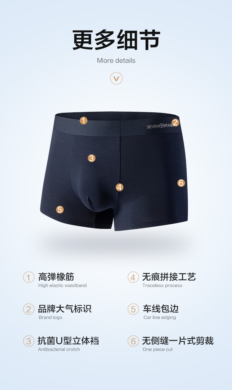 柒牌平角内裤男士夏季薄款透气抗菌运动休闲男生四角短裤衩2条装 123F70470