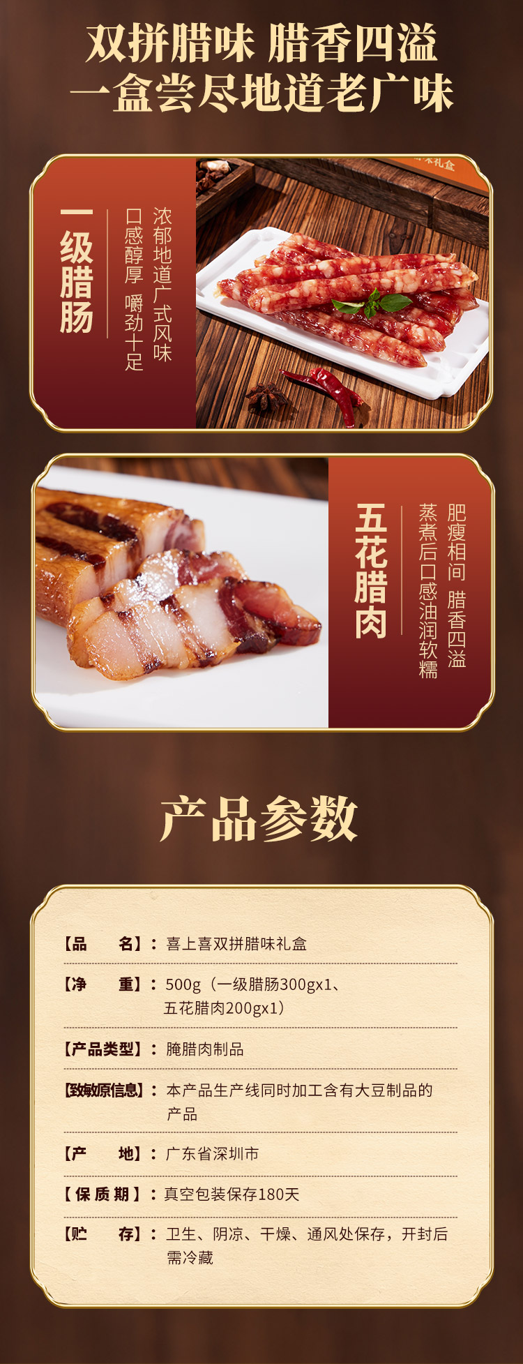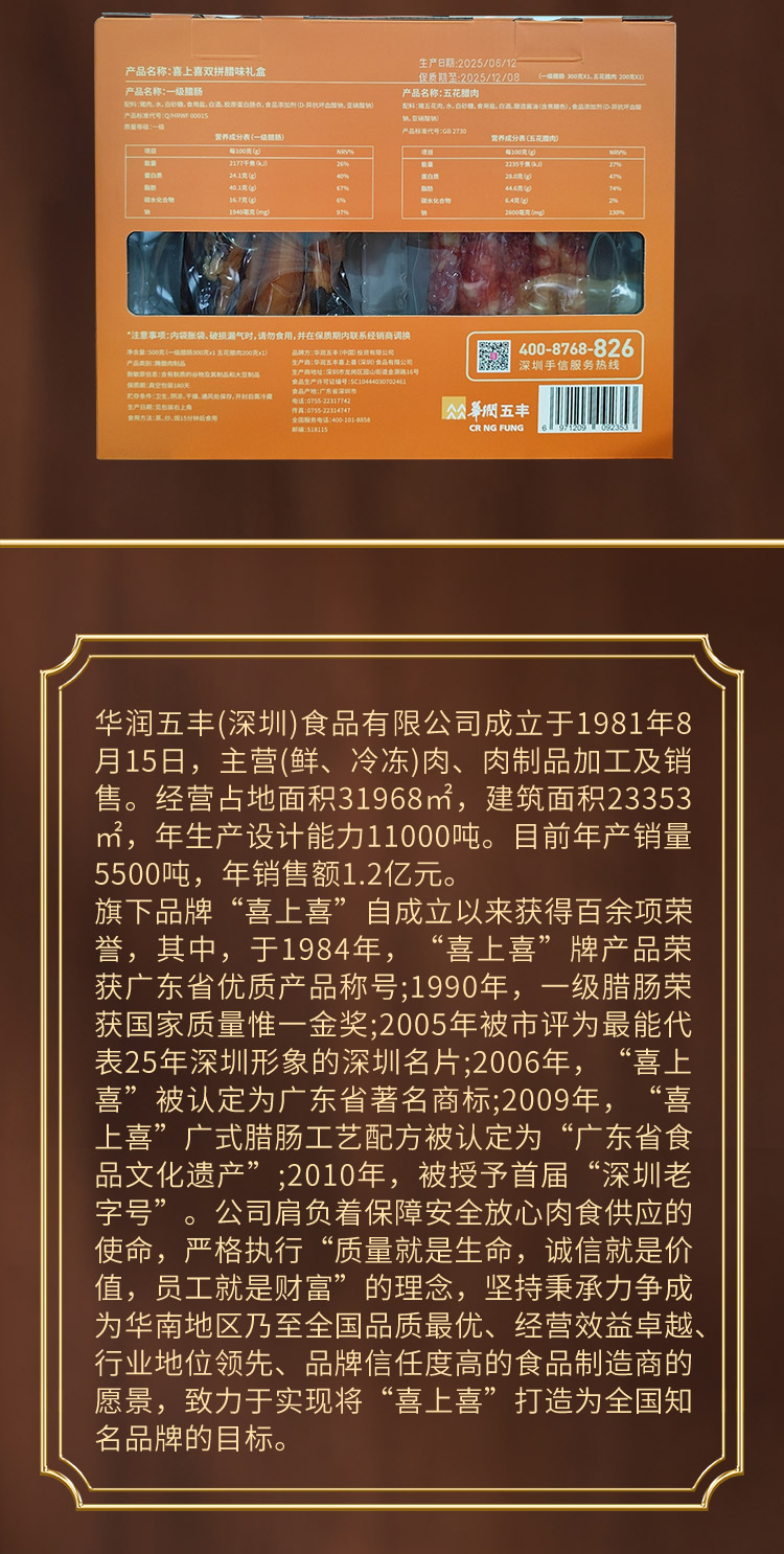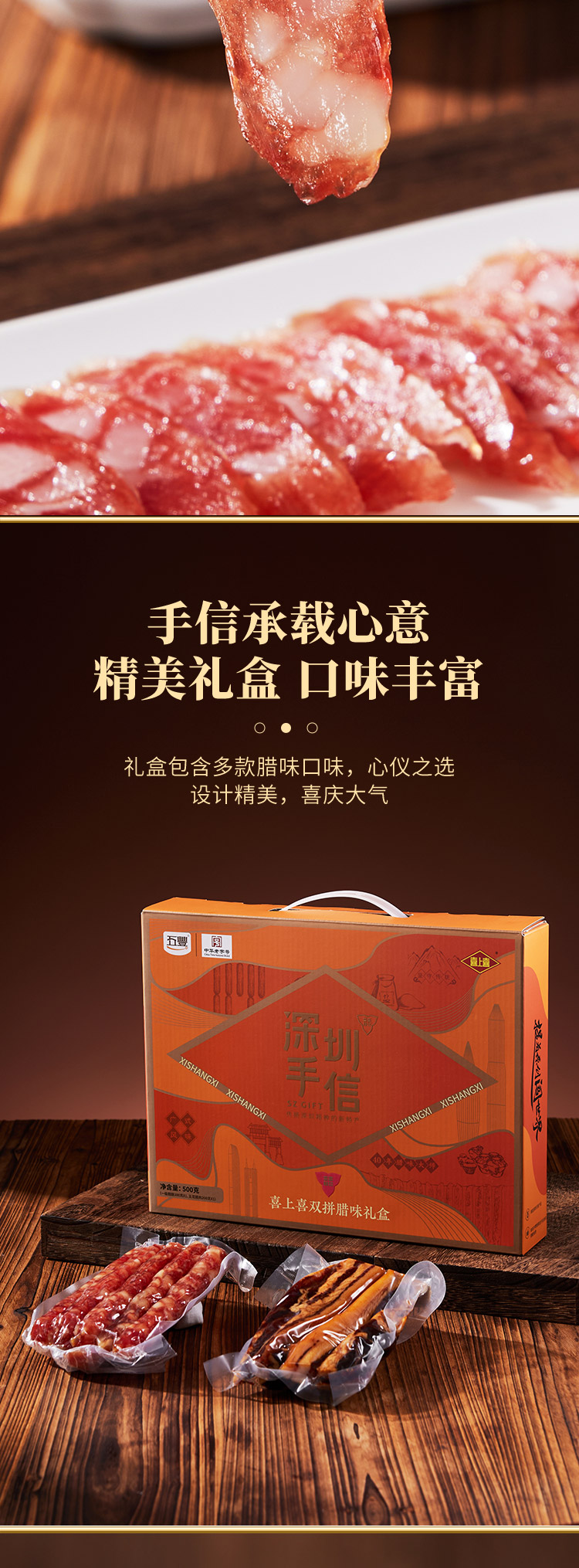 深圳手信 五丰喜上喜双拼腊味礼盒 500g