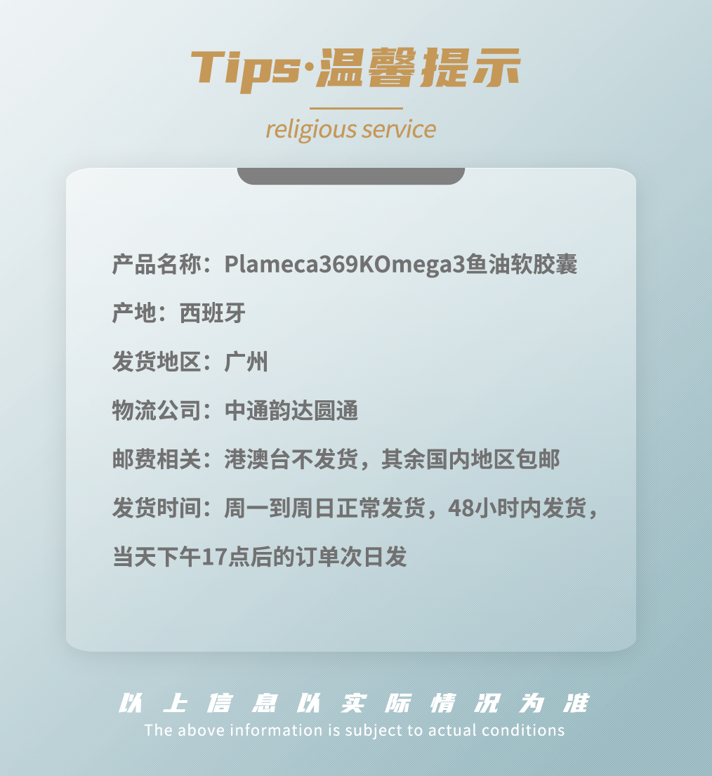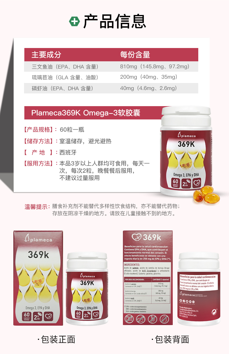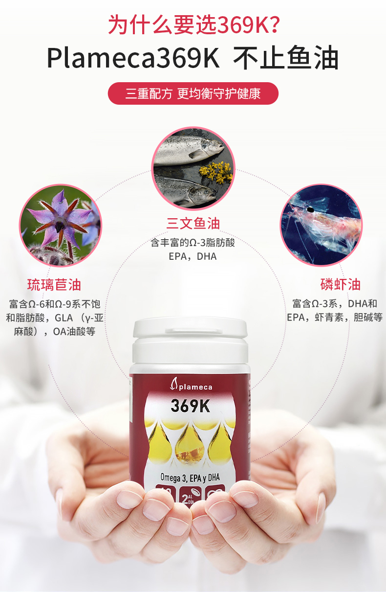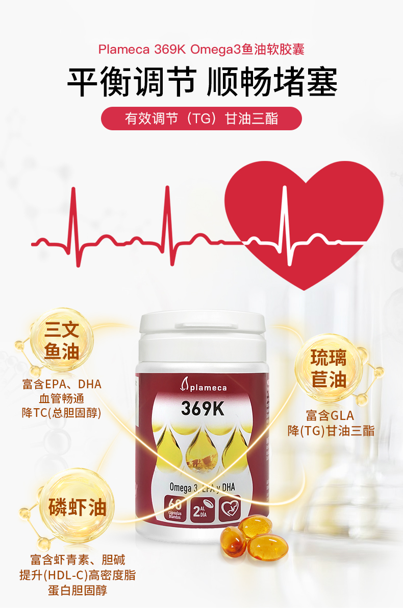 【邱震海专属】Plameca 369KOmega3鱼油软胶囊 三重成分 疏通血管 60粒/瓶(有效期至2026年4月,介意慎拍)