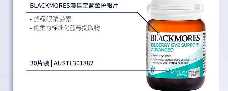 【保税】澳洲 澳佳宝Blackmores蓝莓护眼宁片 30粒