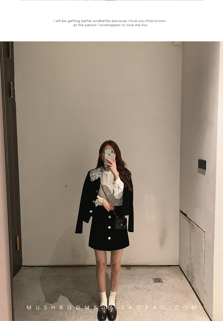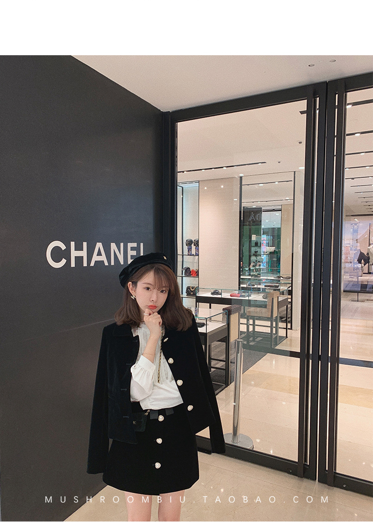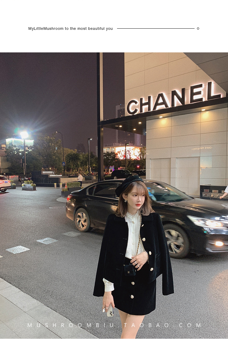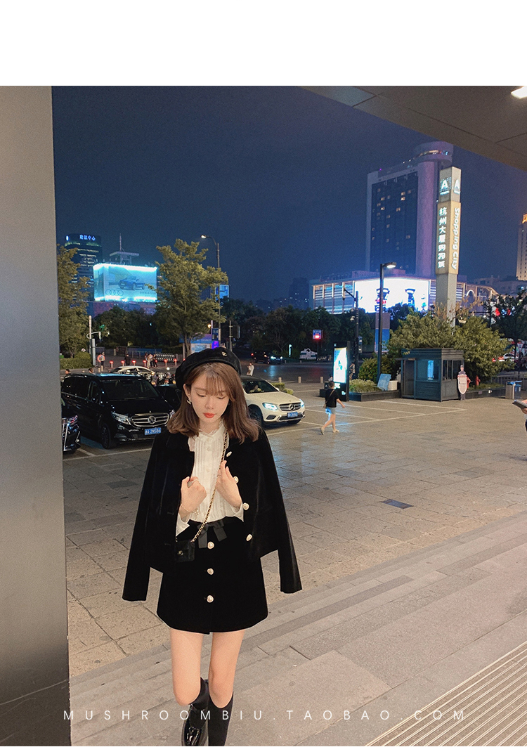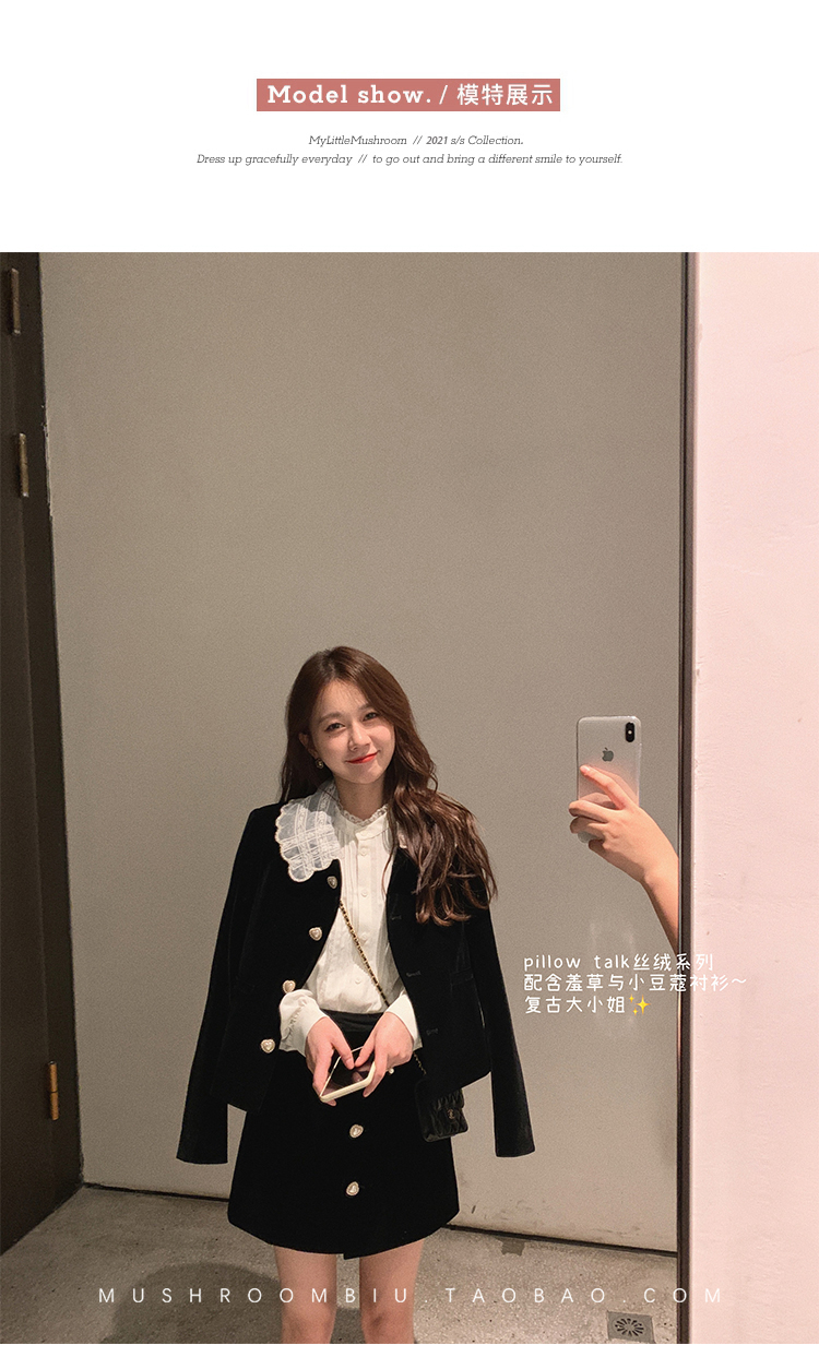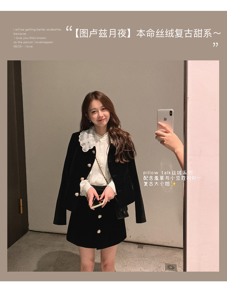金蘑菇菇【图卢兹月夜】小个子早秋复古丝绒少女清甜减龄套装