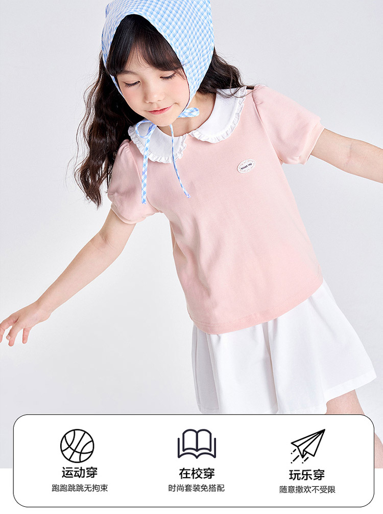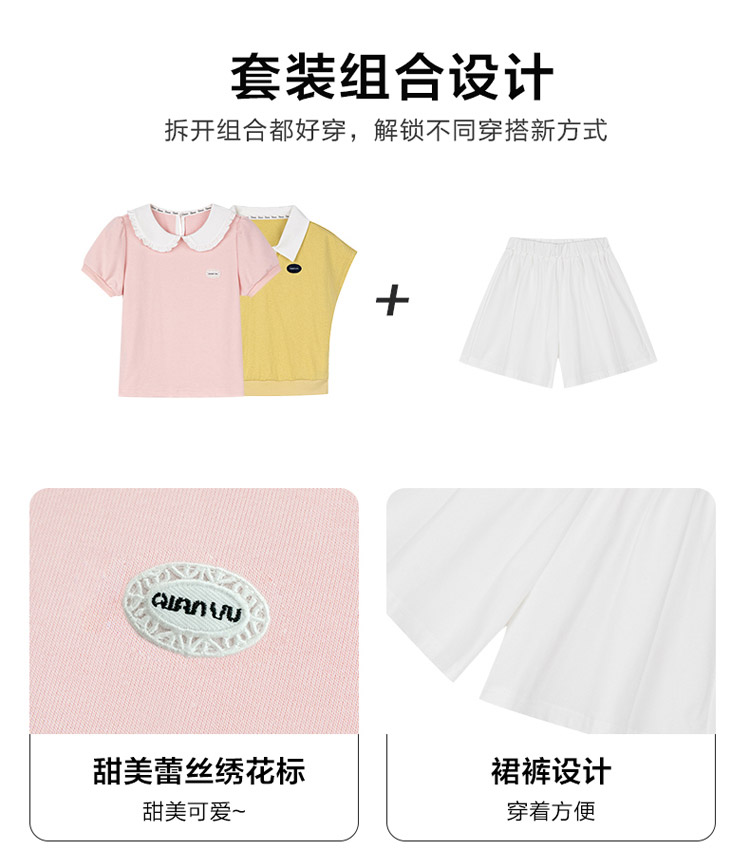 笛莎千与2025夏季新款女童时尚学院风裙裤两件套套装