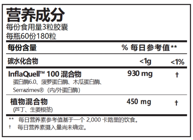 InflaQuell™ 是一款含植物蛋白水解酶的复合配方,其成分特性包括: