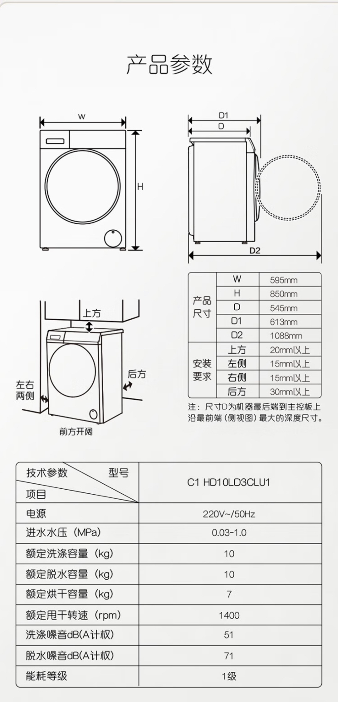 卡萨帝(Casarte)洗衣机 C1 HD10LD3CLU1