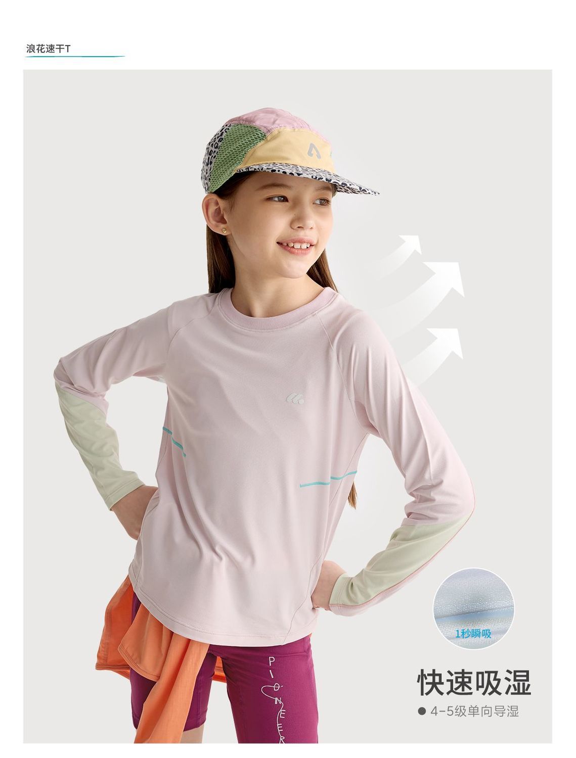 fx-咕噜日记儿童轻盈撞色云朵T恤2026春夏女童凉感速干长袖亲子防晒PCTX2617-PCTX2618