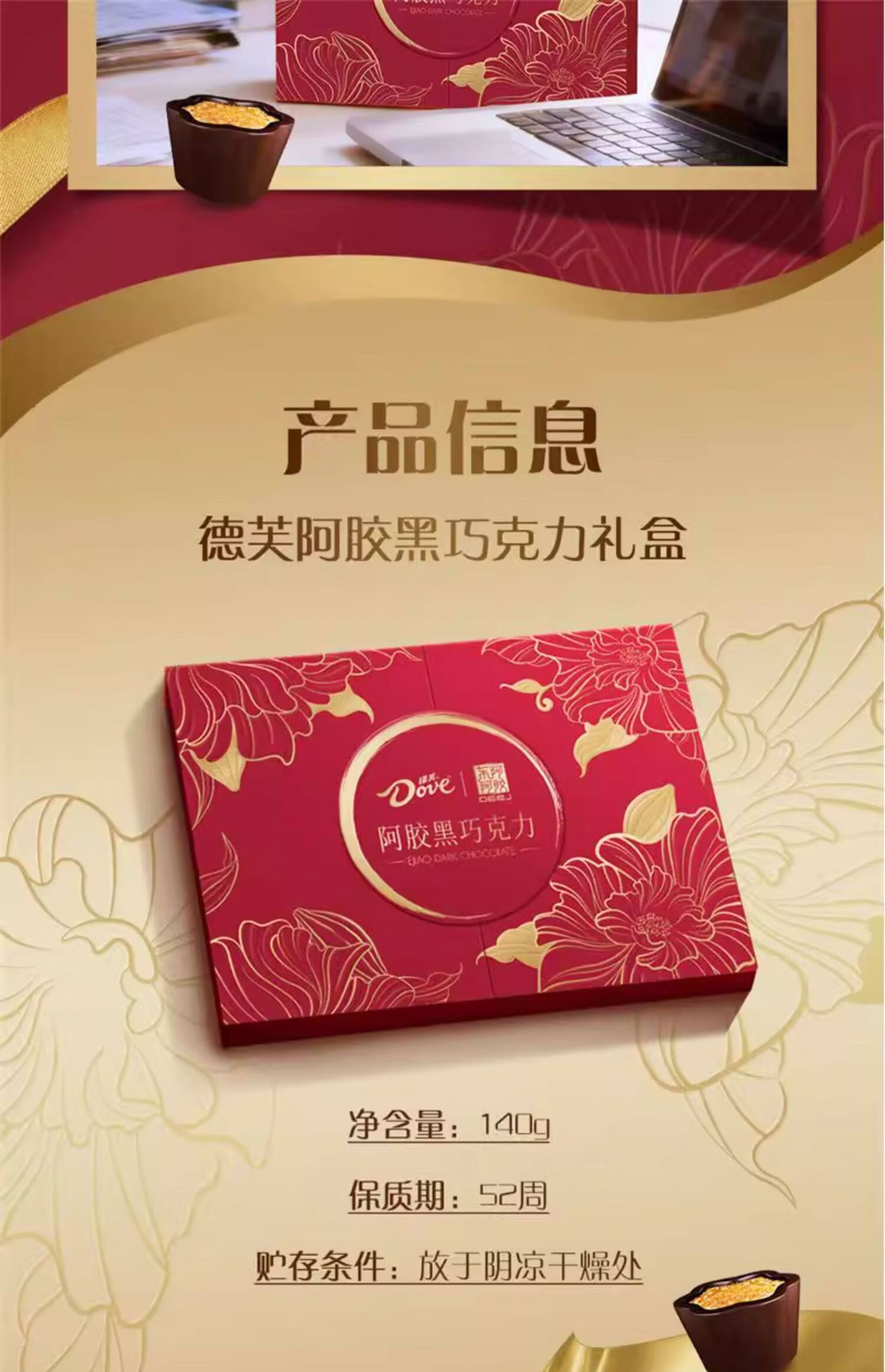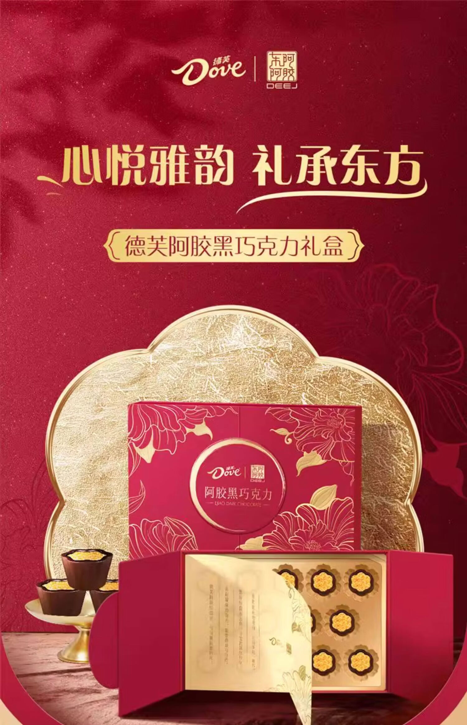 德芙东阿阿胶联名巧克力 阿胶黑巧克力礼盒140g/盒