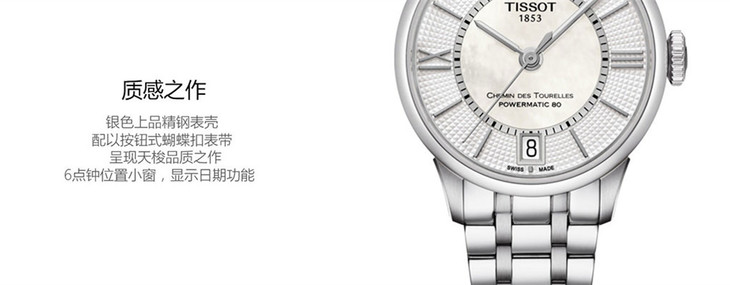 | 防水 | 50 m | 表带 | 精钢表链 按钮式蝴蝶扣 |