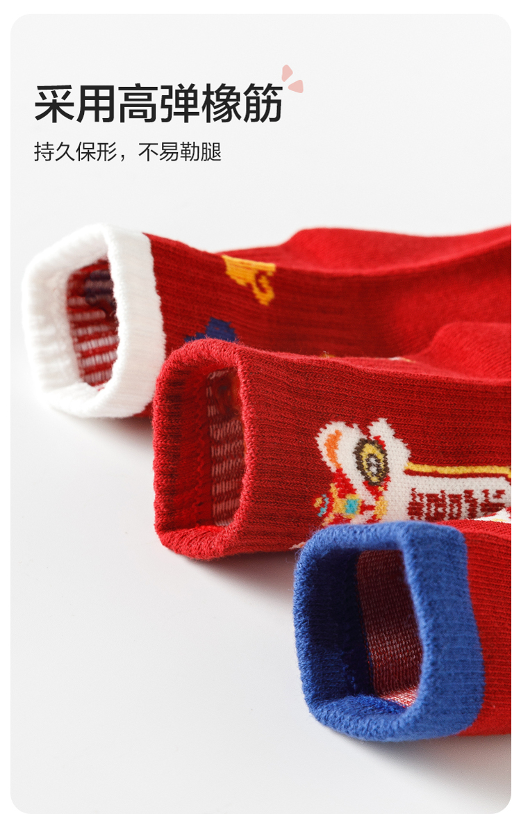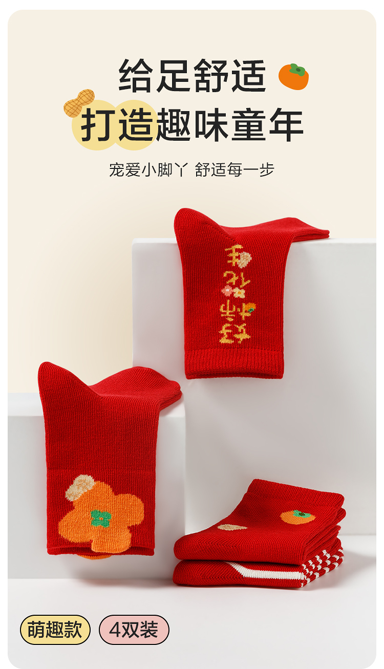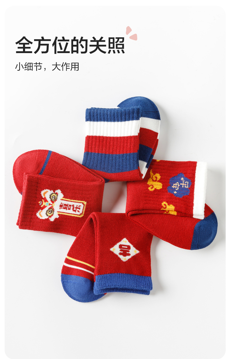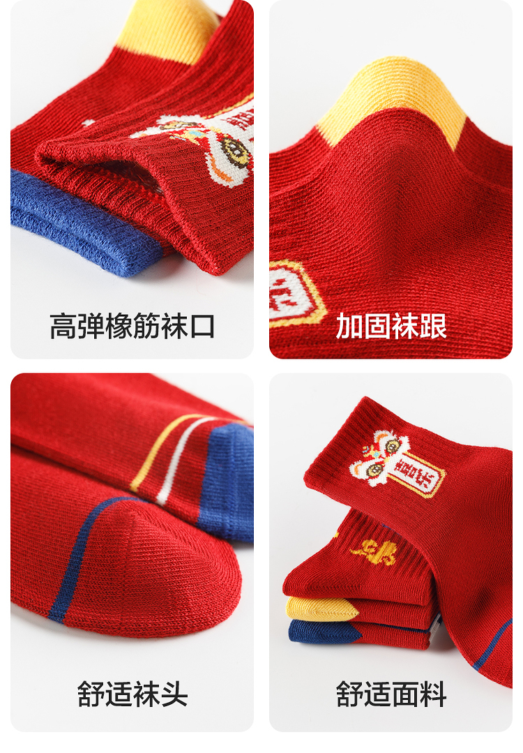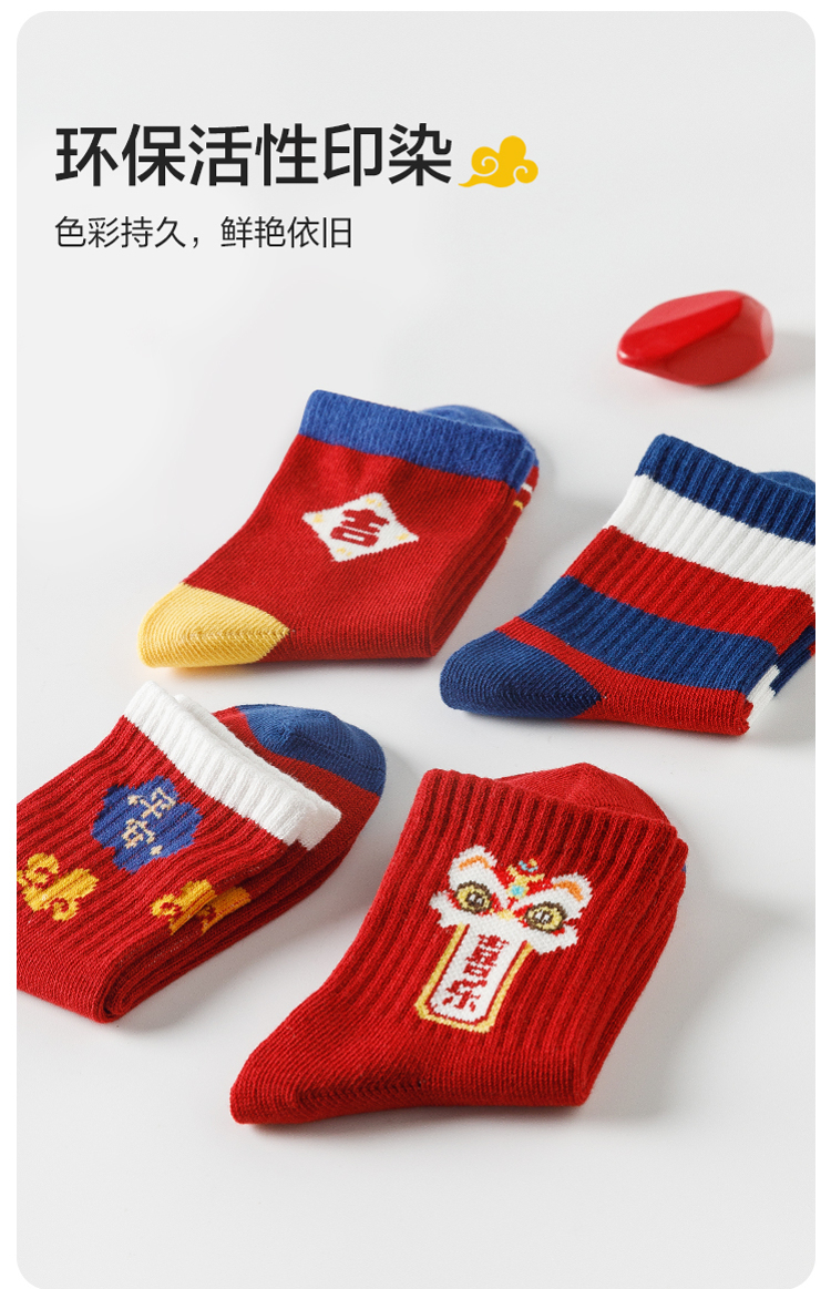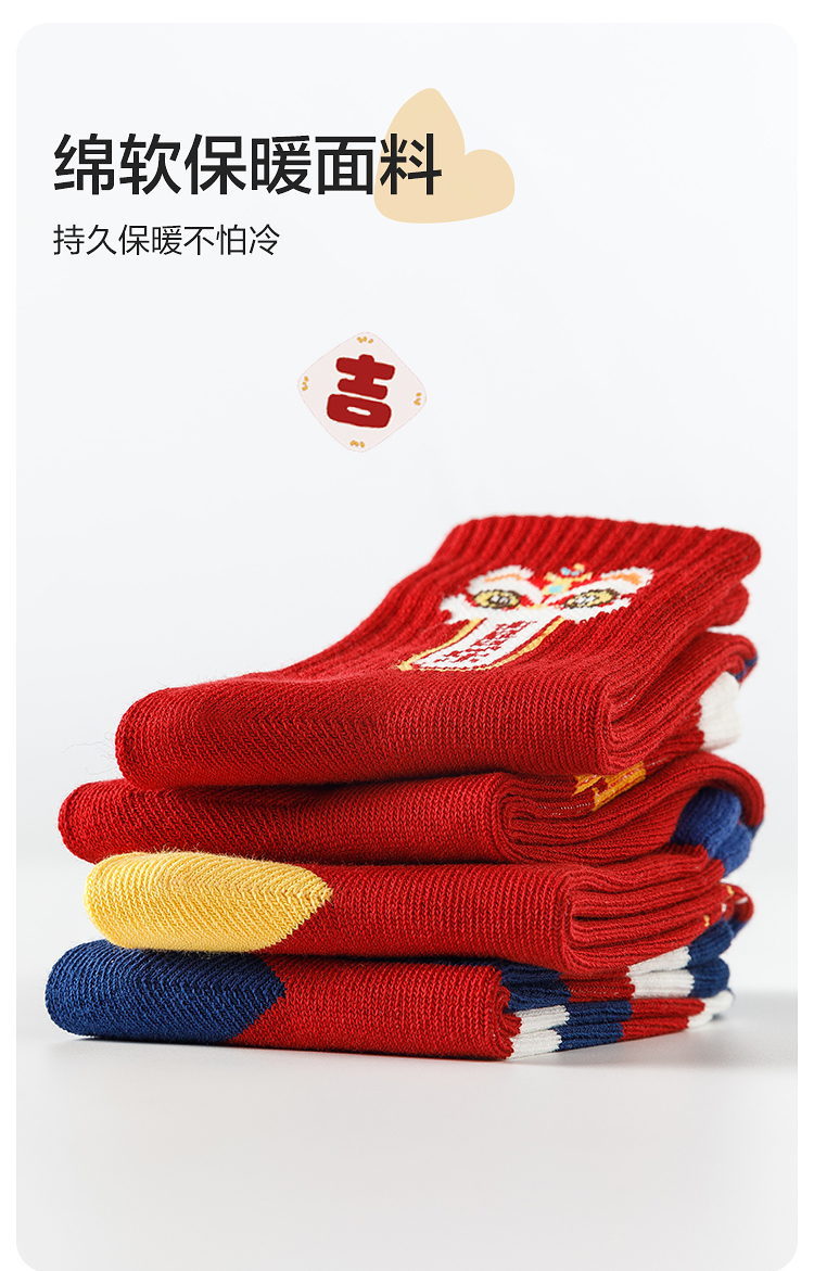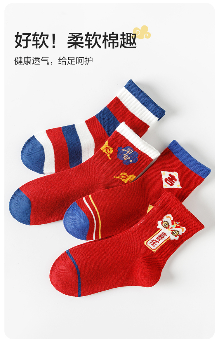 儿童袜子新年新款男童女童棉袜小中大童本命年红色袜子4双装