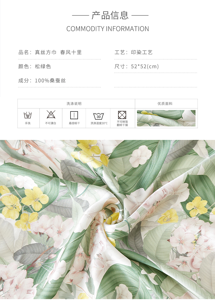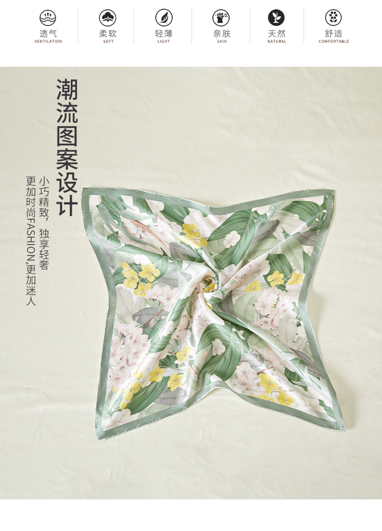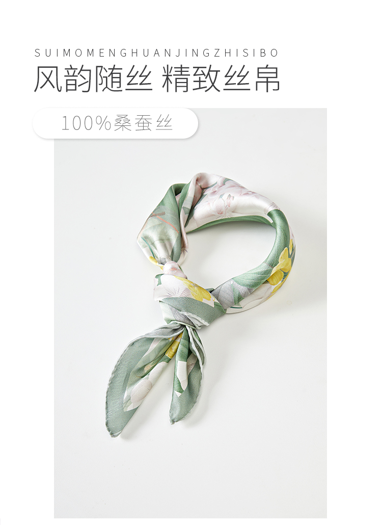 SAINTJOY/上久楷 女式真丝方巾 春风十里 FJS23044