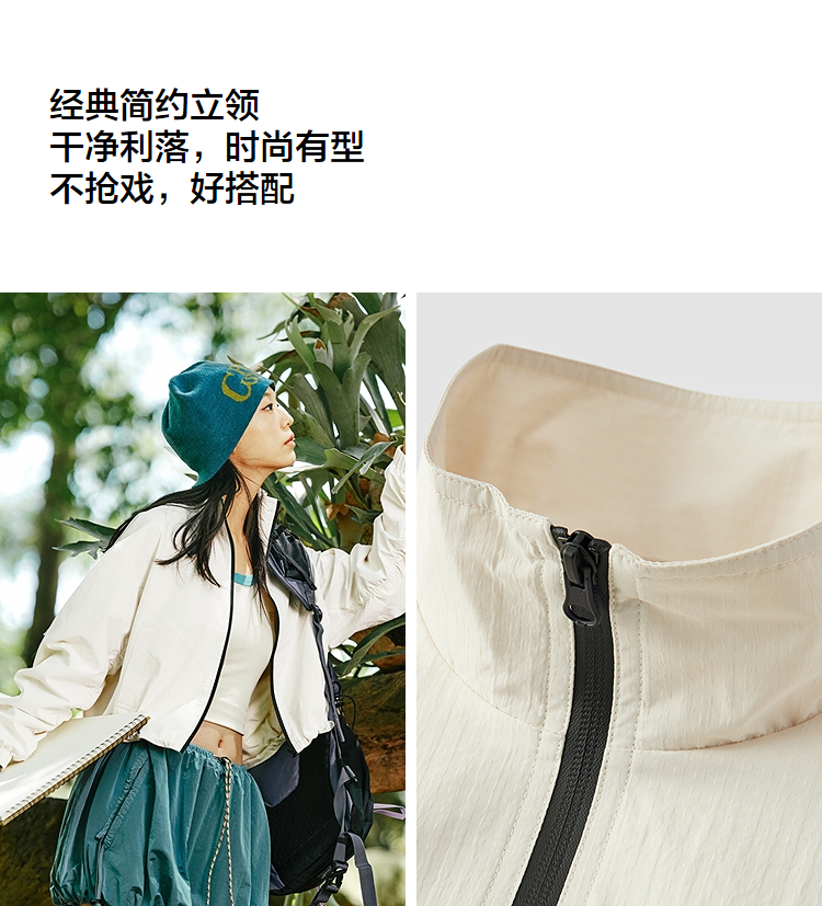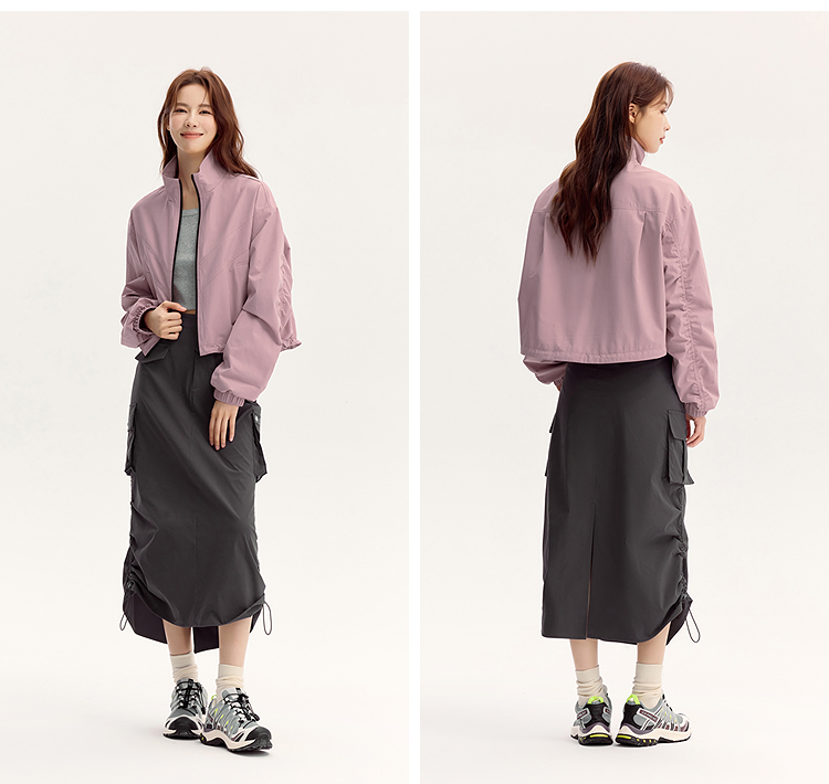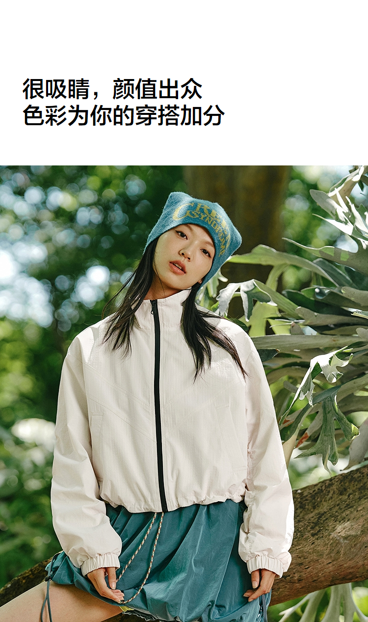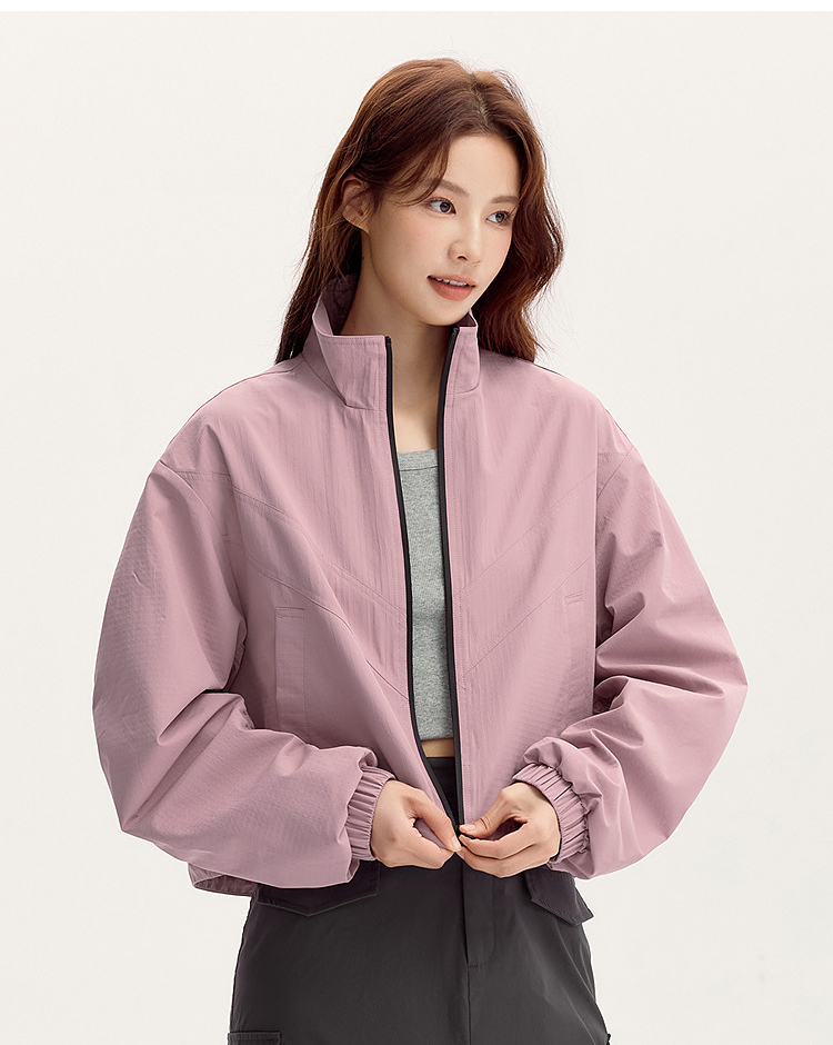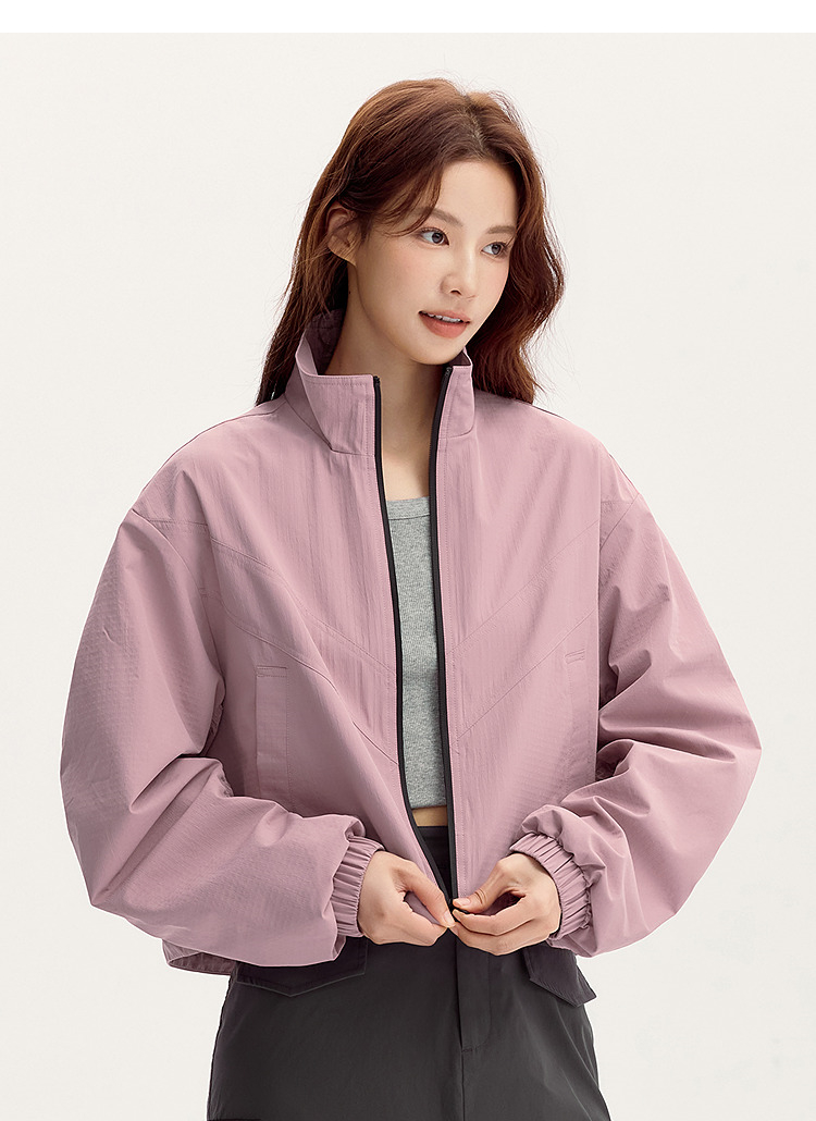 森马外套女立领格纹肌理秋季新款oversize抽绳撞色夹克时尚潮