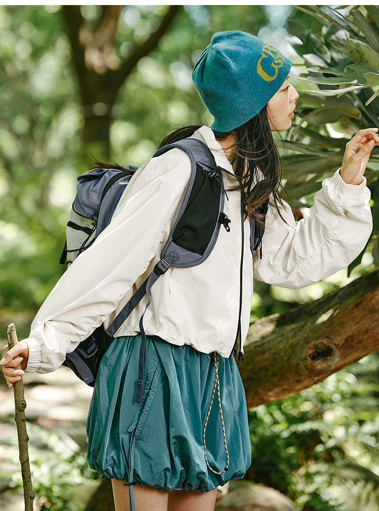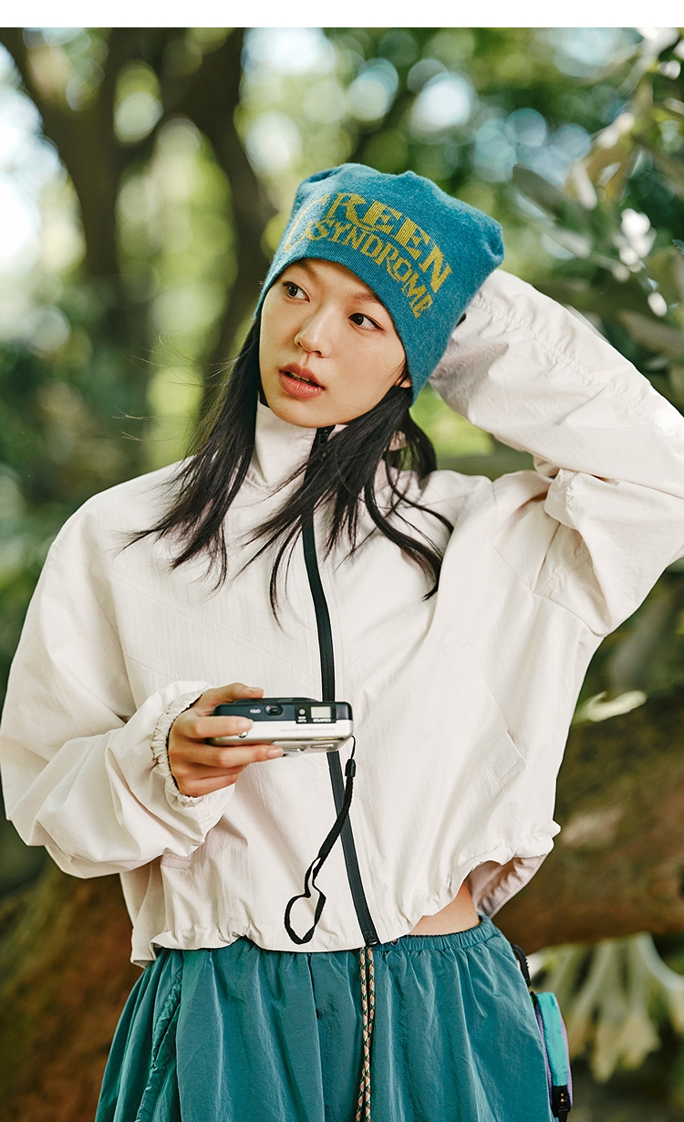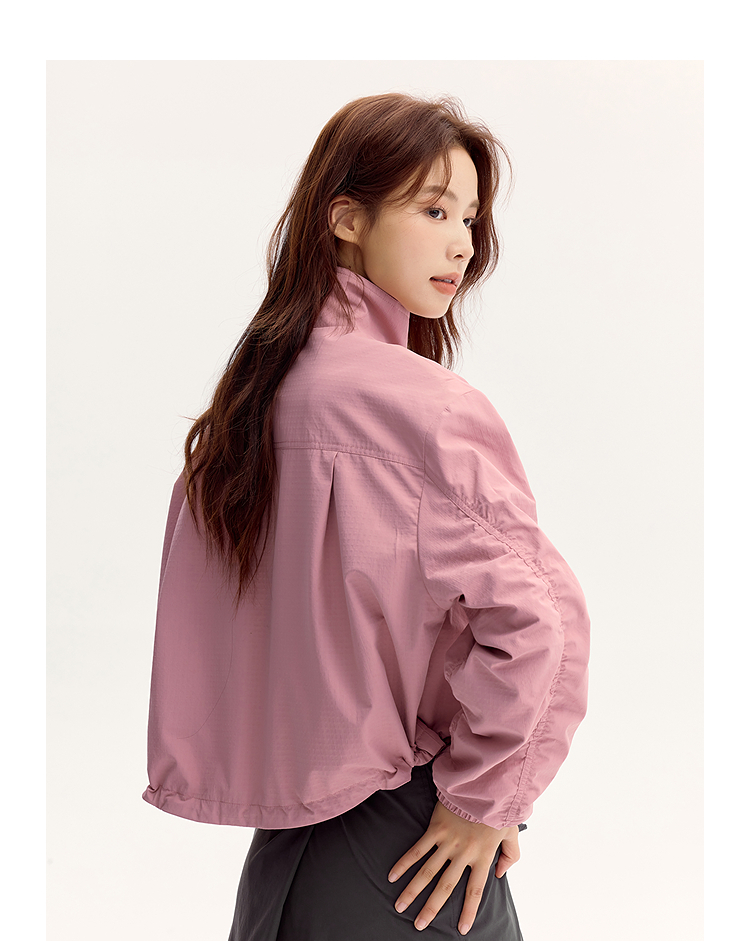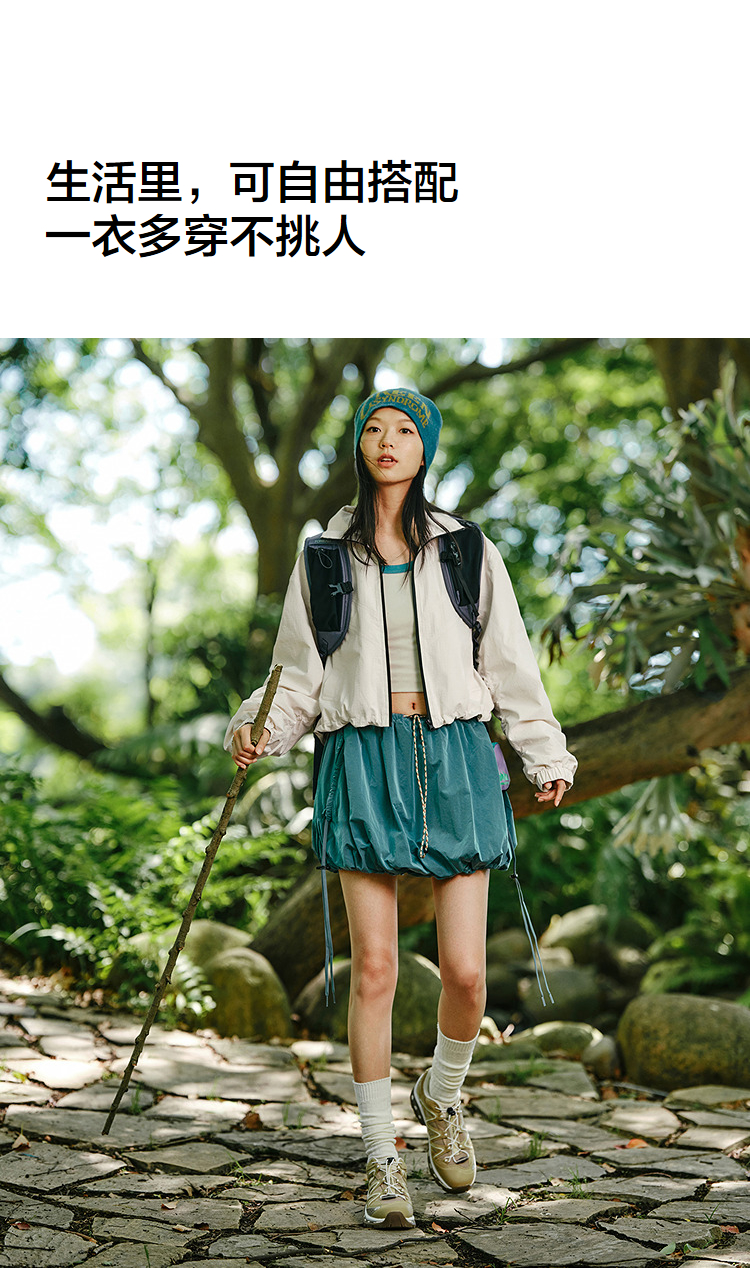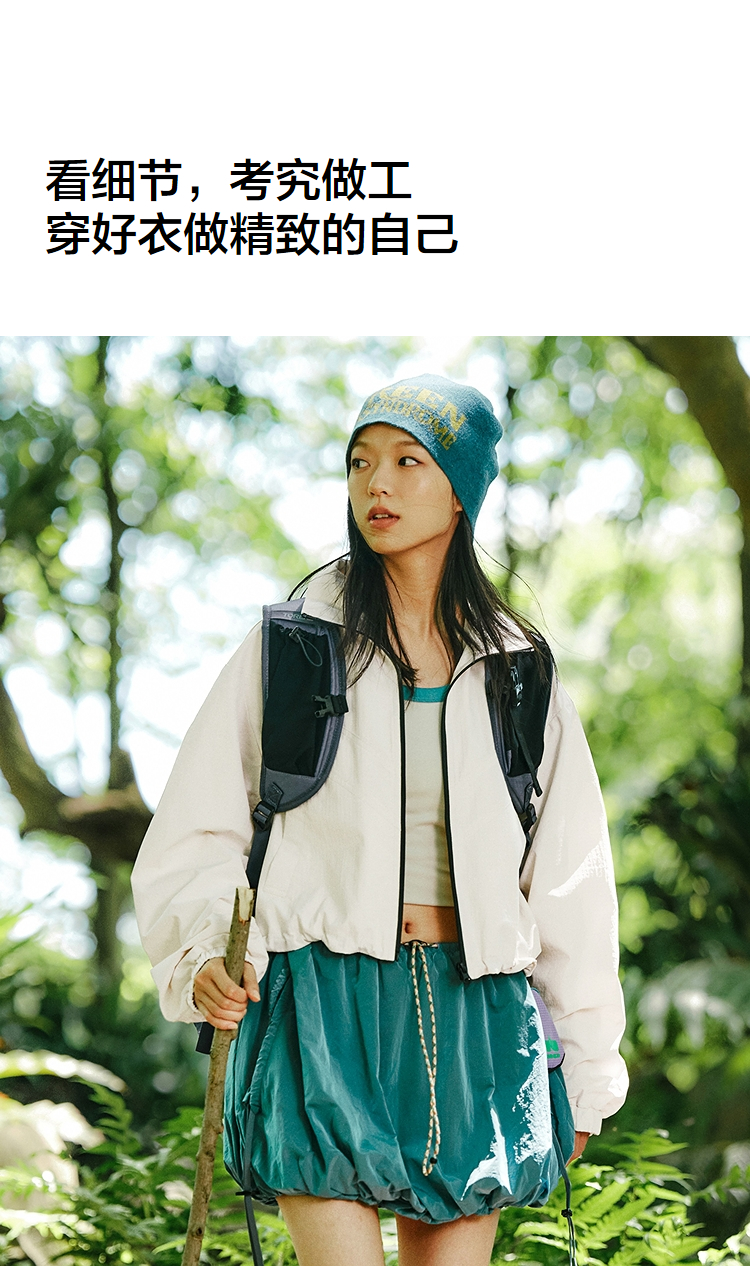 森马外套女立领格纹肌理秋季新款oversize抽绳撞色夹克时尚潮