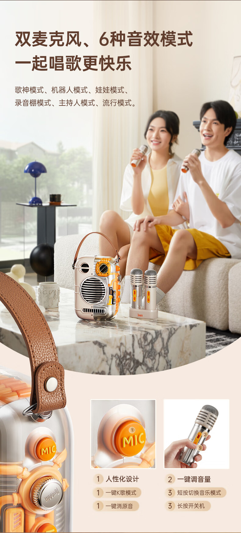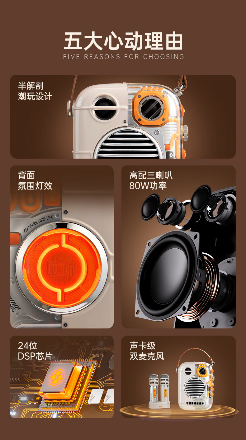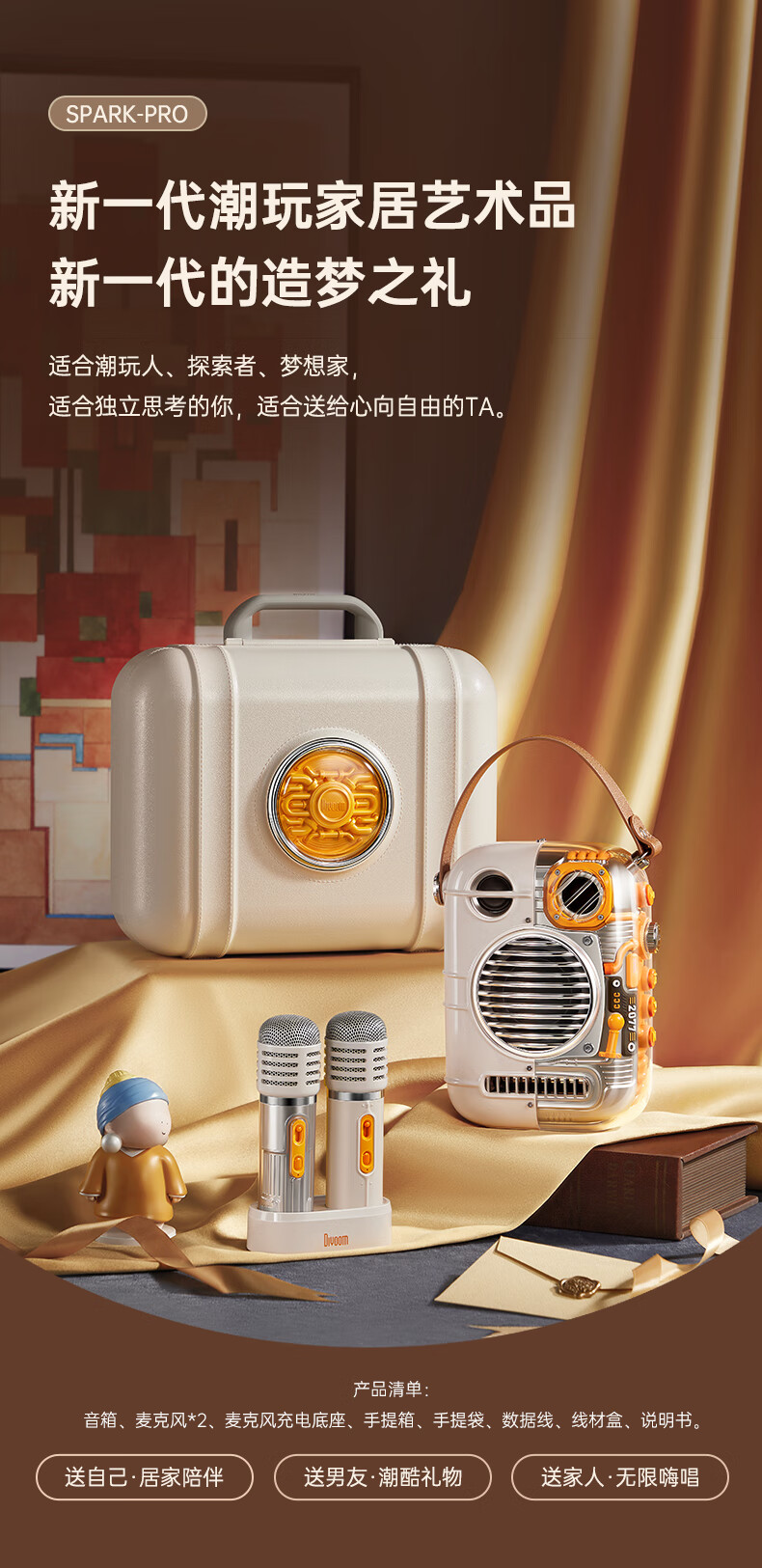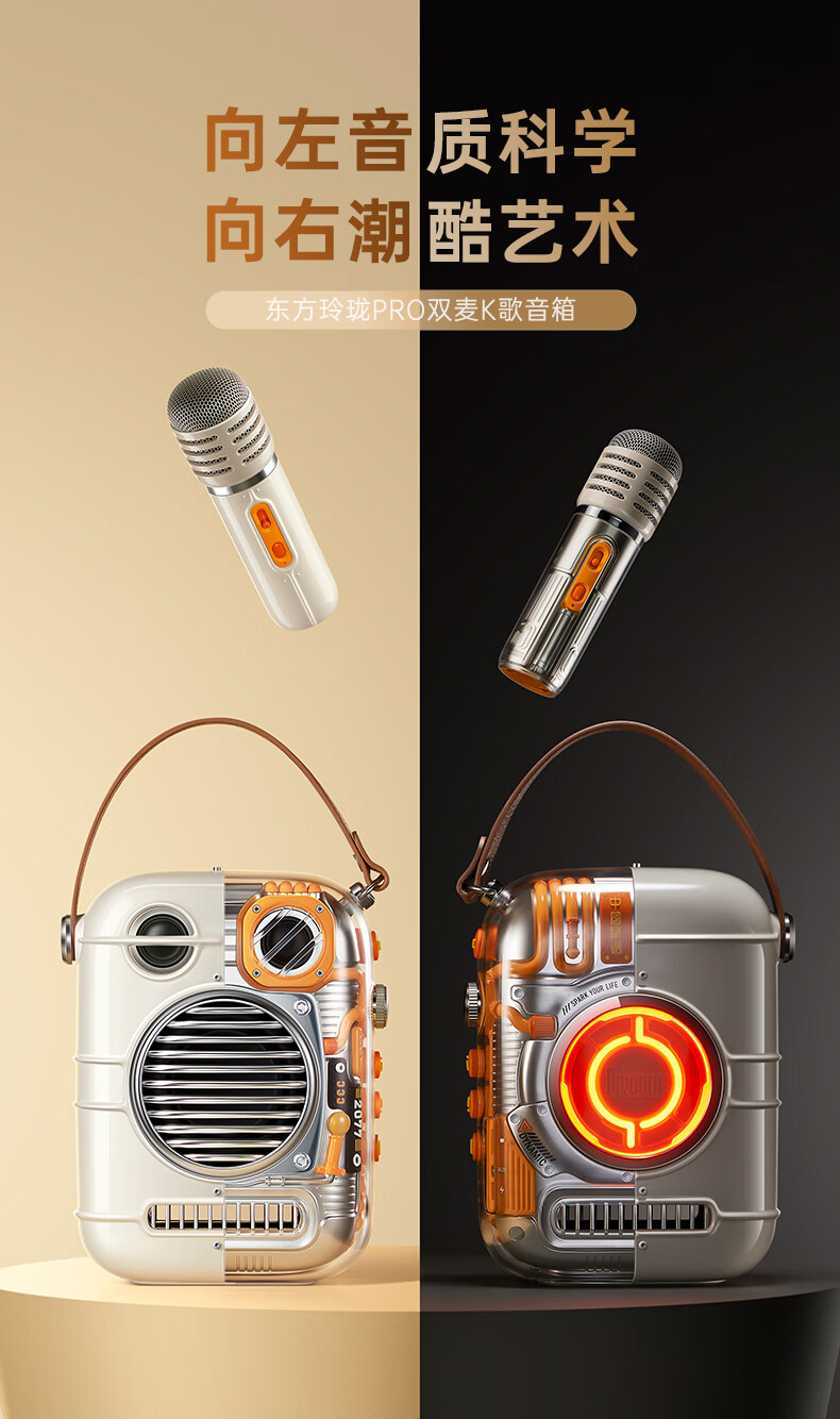 Divoom 家庭KTV音响套装 东方玲珑Pro 点音双麦克风家用话筒音箱一体家庭ktv