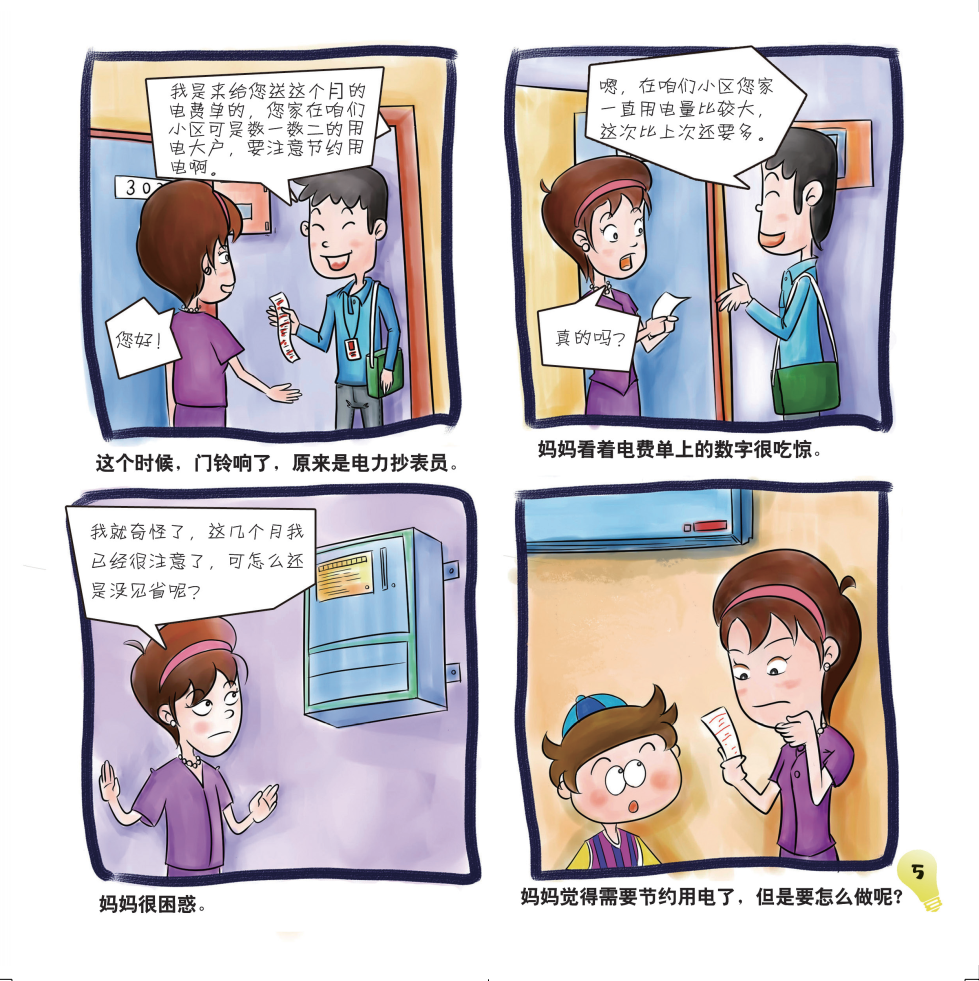本书将小学生可以掌握的节约用电知识进行了梳理,按照儿童的理解水平,编写场景故事,以受小学生欢迎的卡通故事的形式呈现。学生们通过阅读一系列在家庭和学校发生的用电故事,掌握一些节电知识和节电窍门。在每篇故事的后面设置了“节电小贴士”“我是行动派”等形式多样的互动问题,鼓励儿童动手实践,并且动员家长和老师参与进来,共同向社会生活中各种浪费电能的习惯“宣战”。