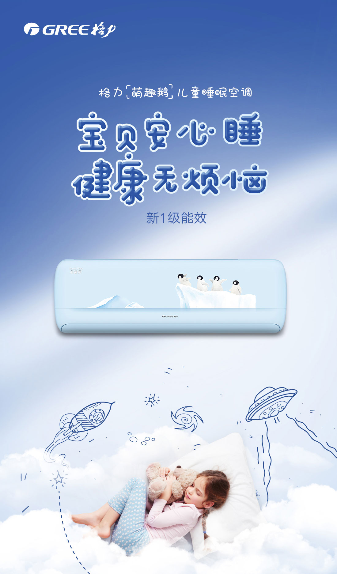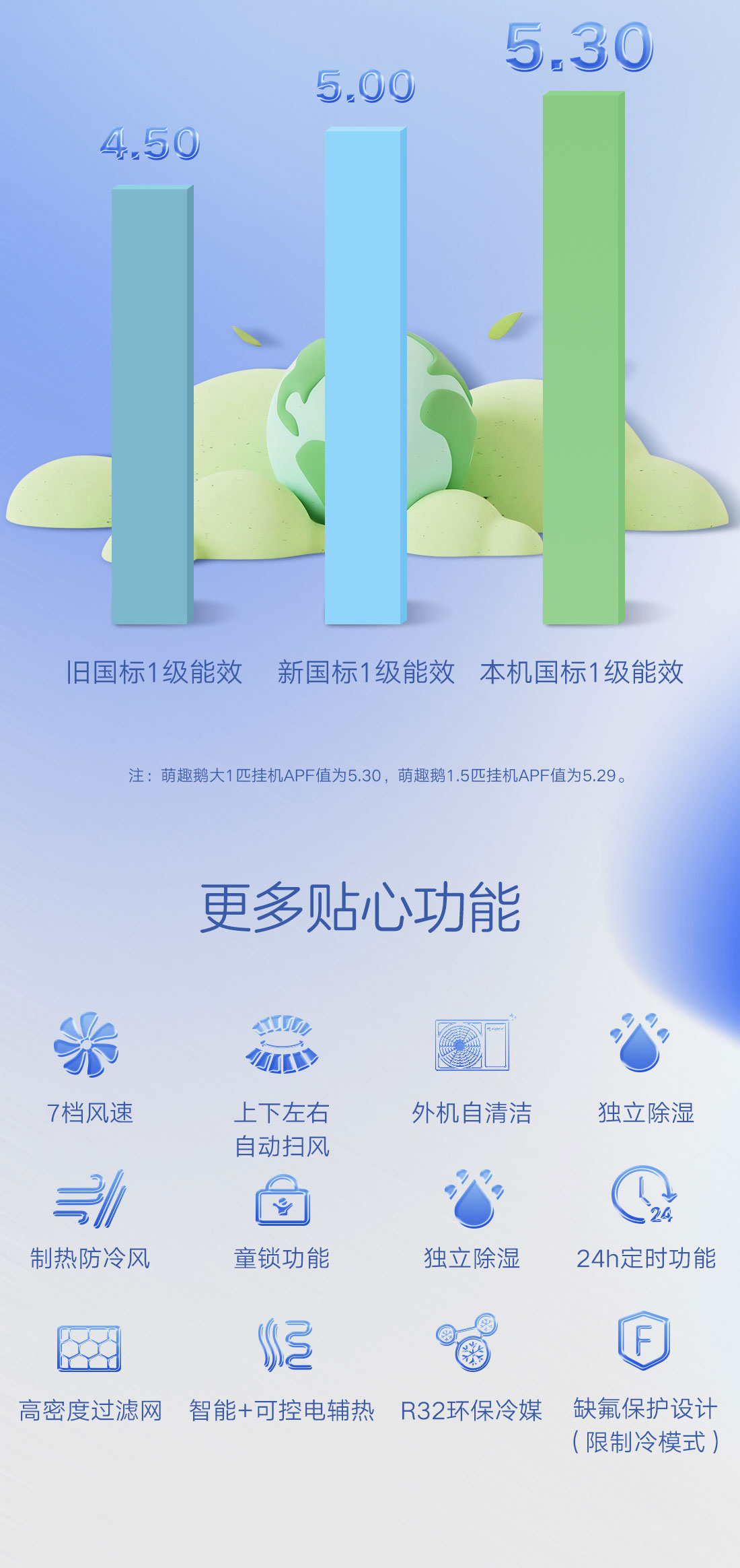 格力·萌趣鹅变频冷暖大1匹1级能效挂机空调 KFR-26GW/(26555)FNhAa-B1(WIFI)(天气蓝)