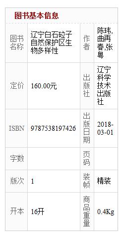 辽宁白石砬子自然保护区生物多样性