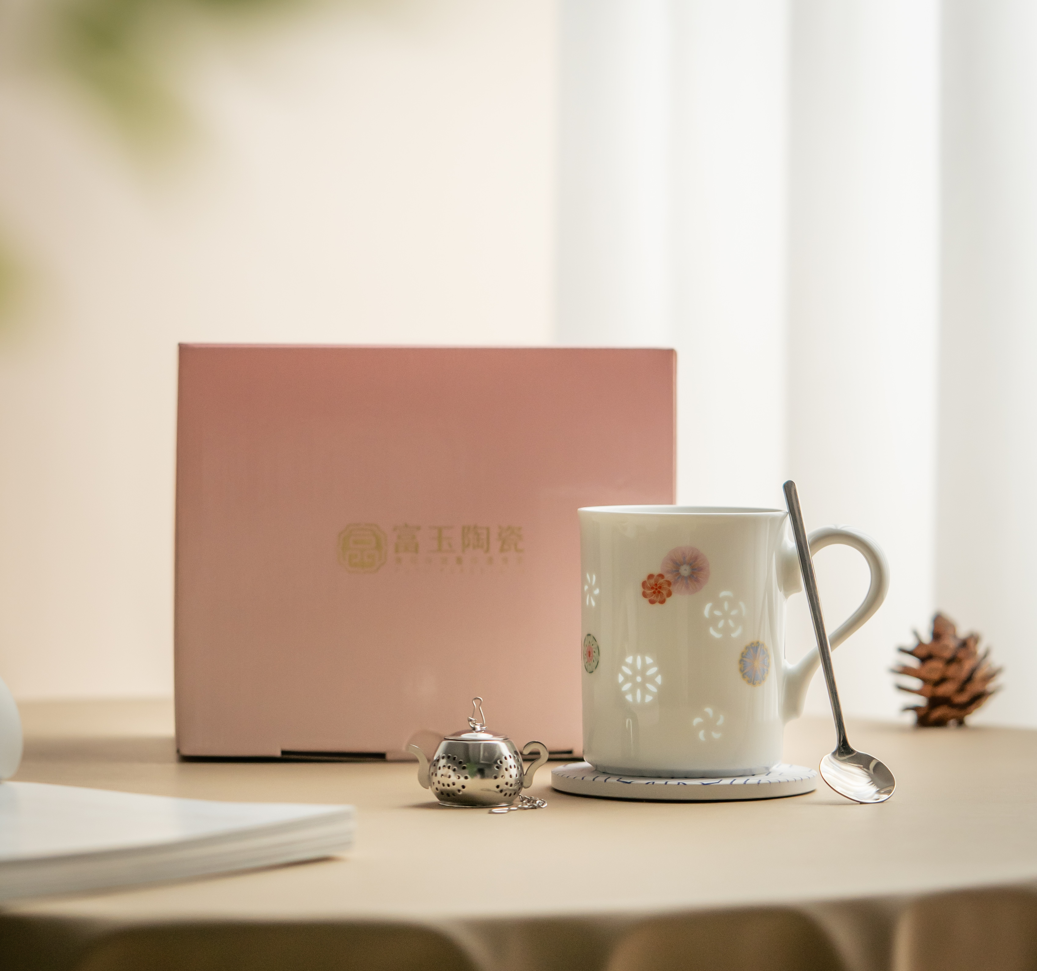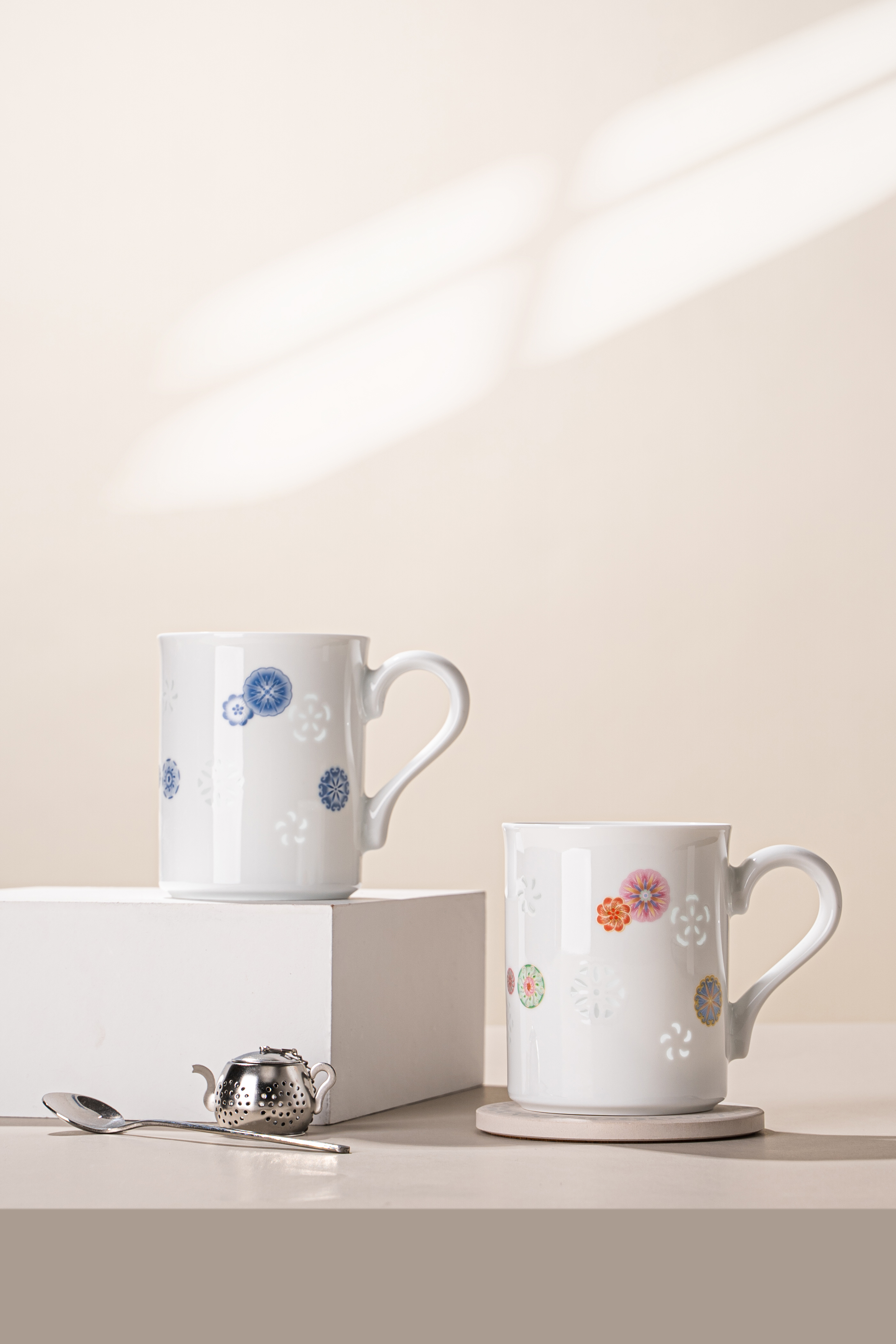 青花/粉彩工艺 | 富玉陶瓷 皮球花系列马克杯 素雅大方 两款可选