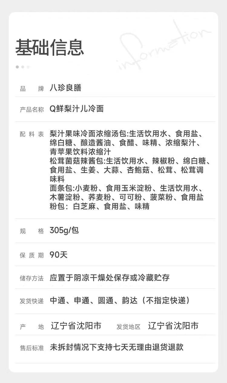 梨汁冷面 酸甜可口 醇香浓郁筋道爽口305g*3包/6包/9包
