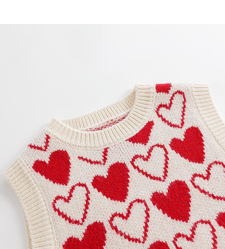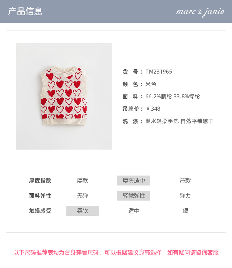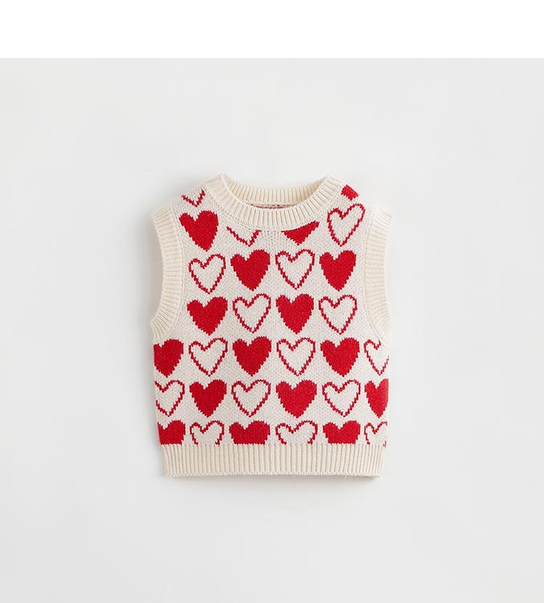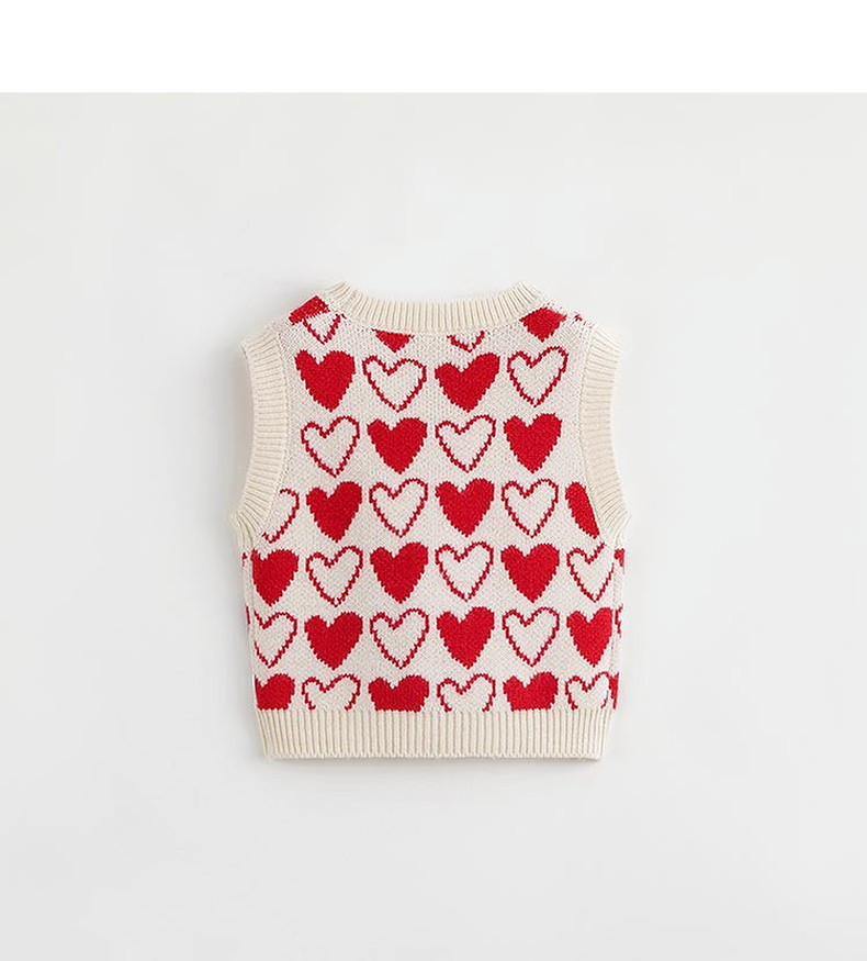 马克珍妮秋装新款 女童柔蓝绒爱心提花针织背心马甲231965