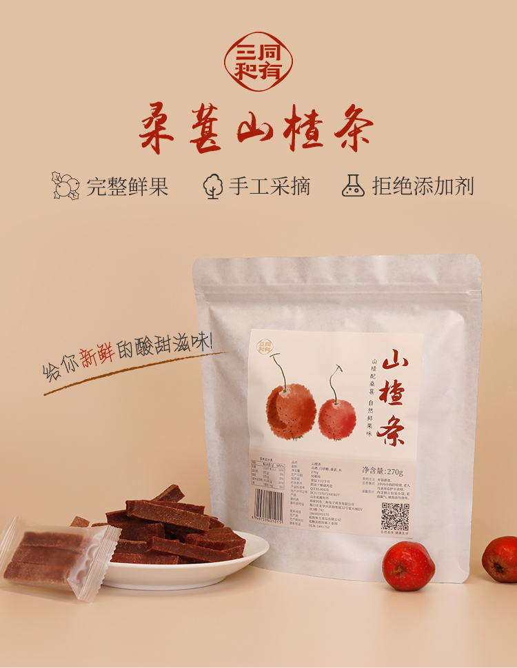 同有三和·桑葚山楂条 | 鲜果打浆 | 清爽酸甜 | 休闲零食 | 办公室常备