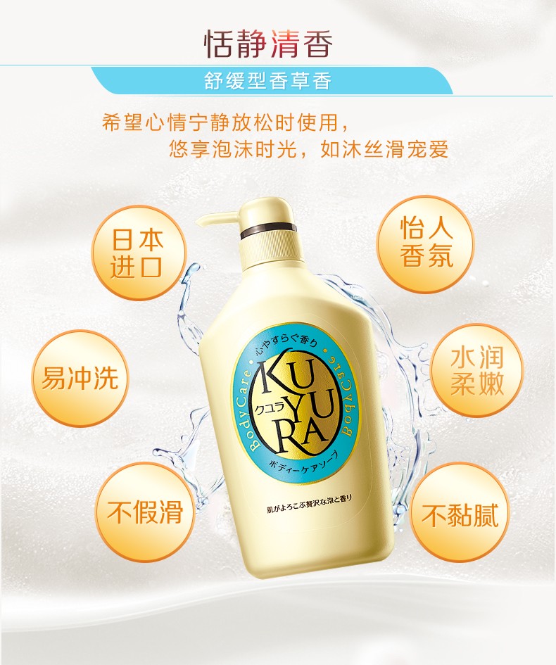 日本资生堂可悠然kuyura美肌沐浴露(恬静清香)550ml