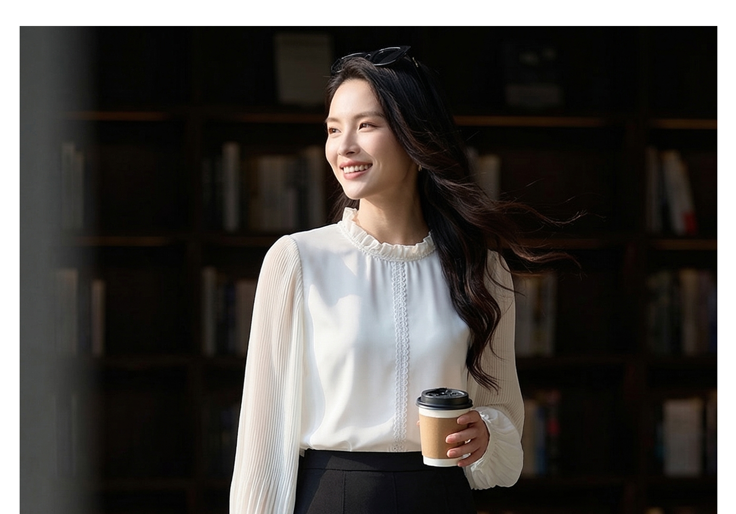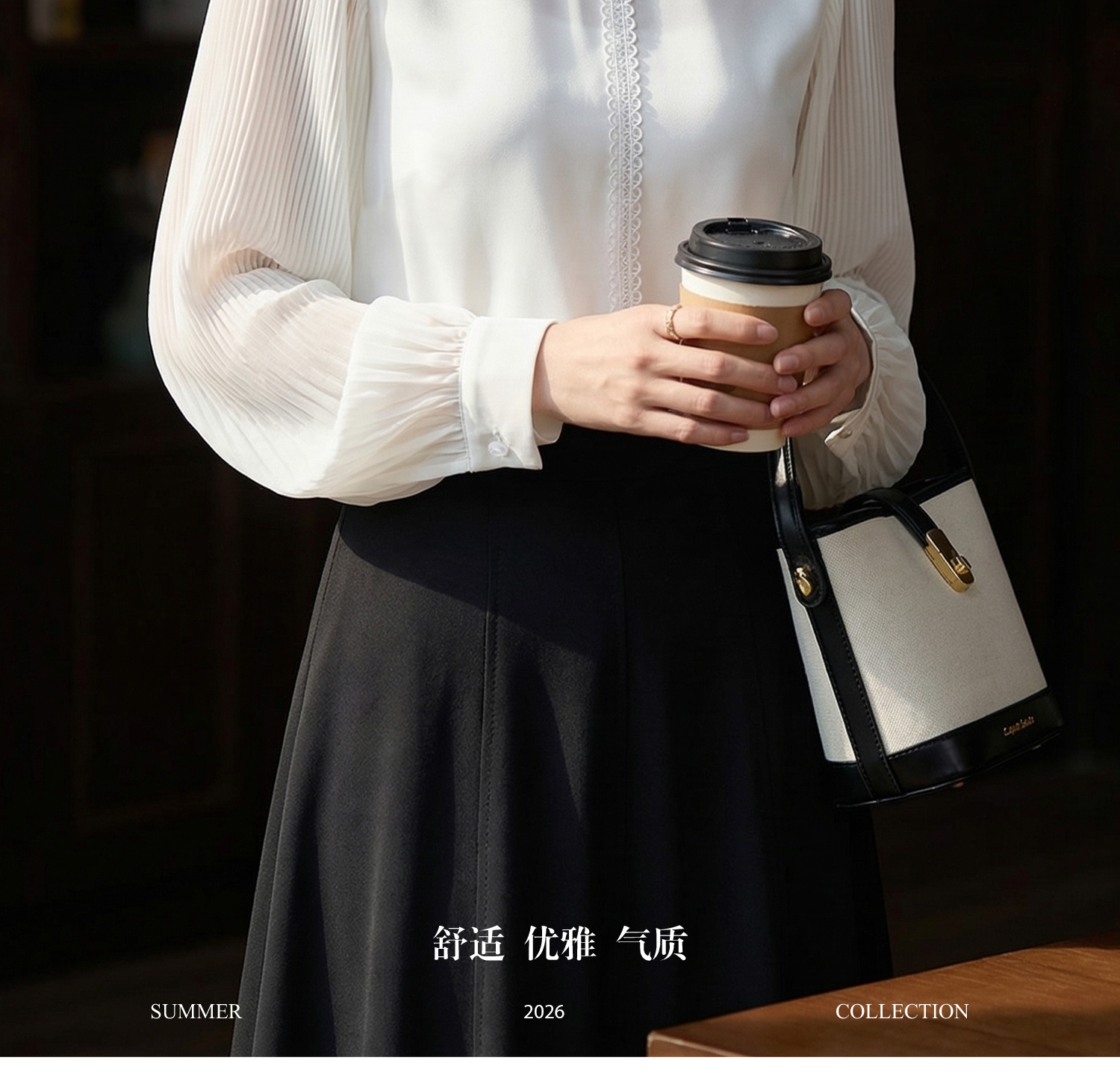 米思阳2026春新款法式轻奢复古风琴袖白衬衫女设计感小众气质高级长袖通勤职业衬衣1117/1158