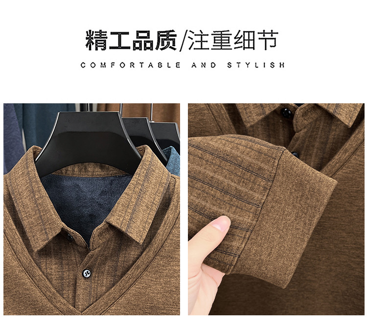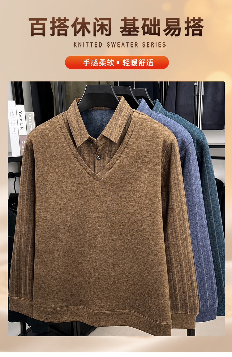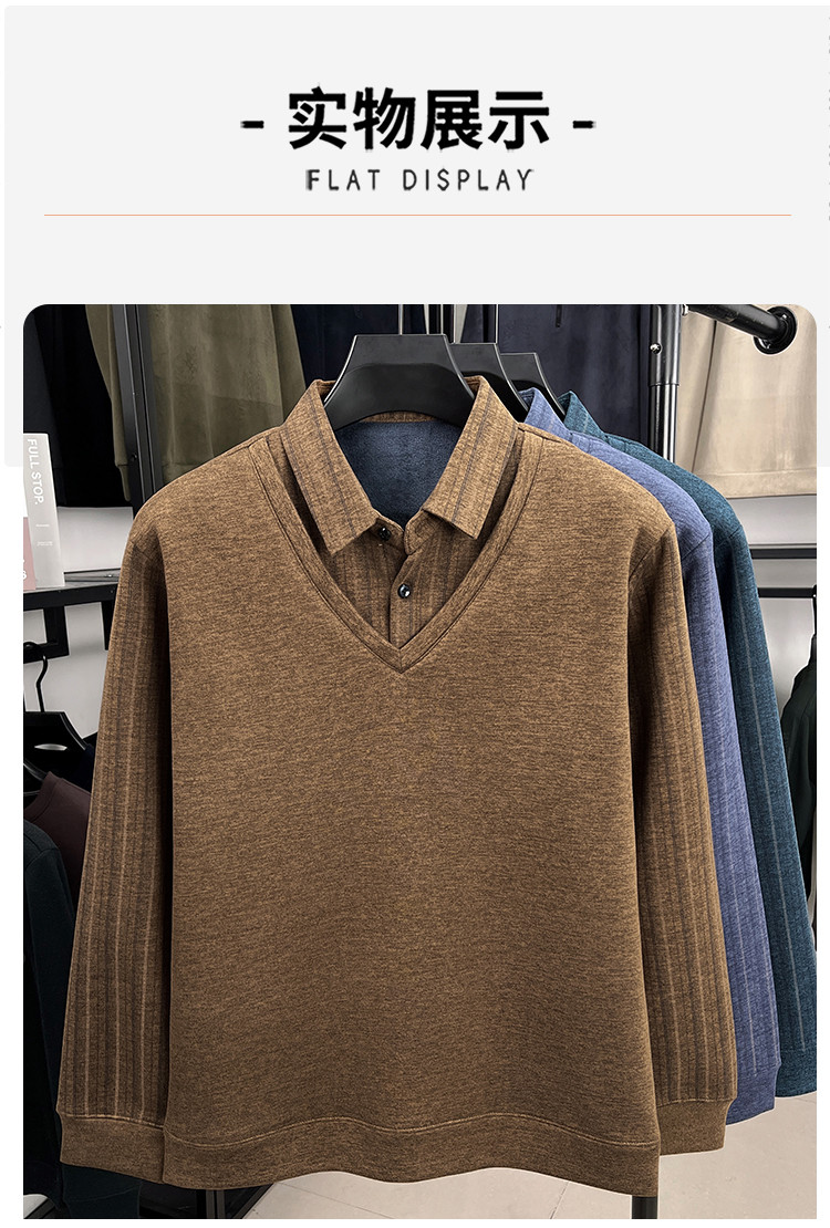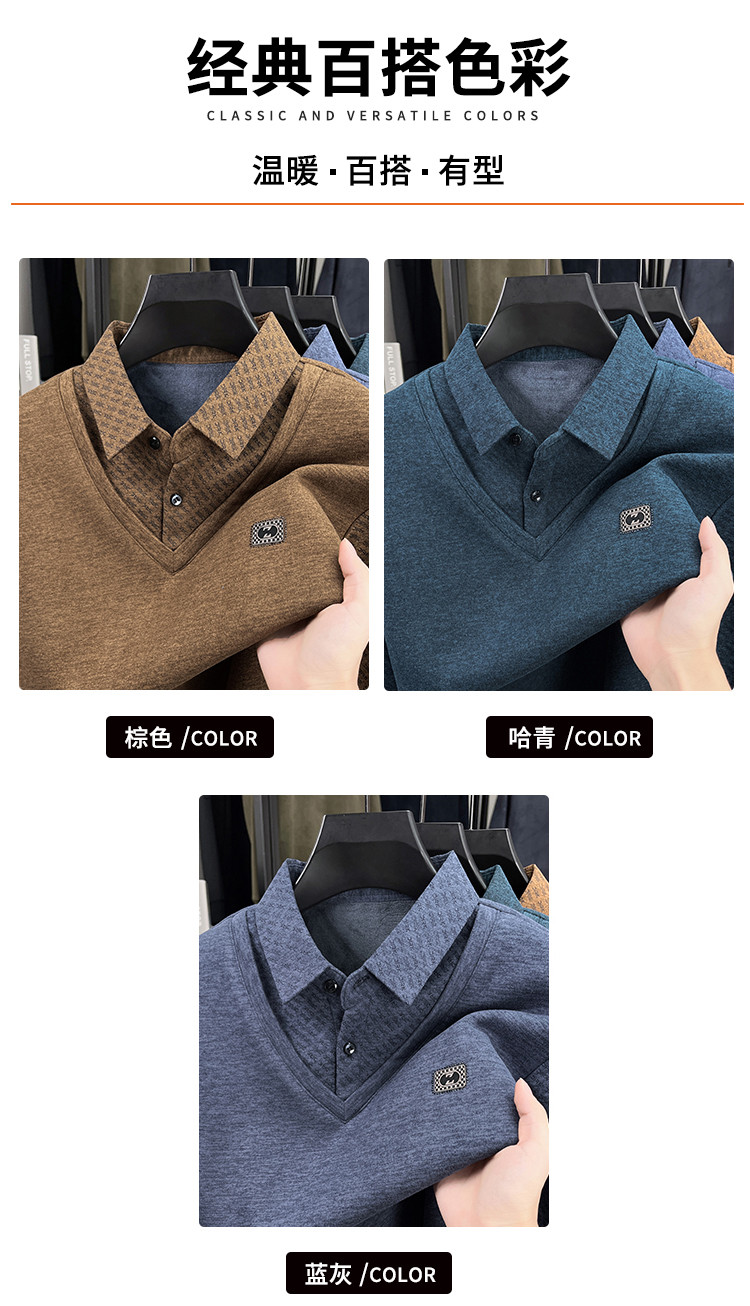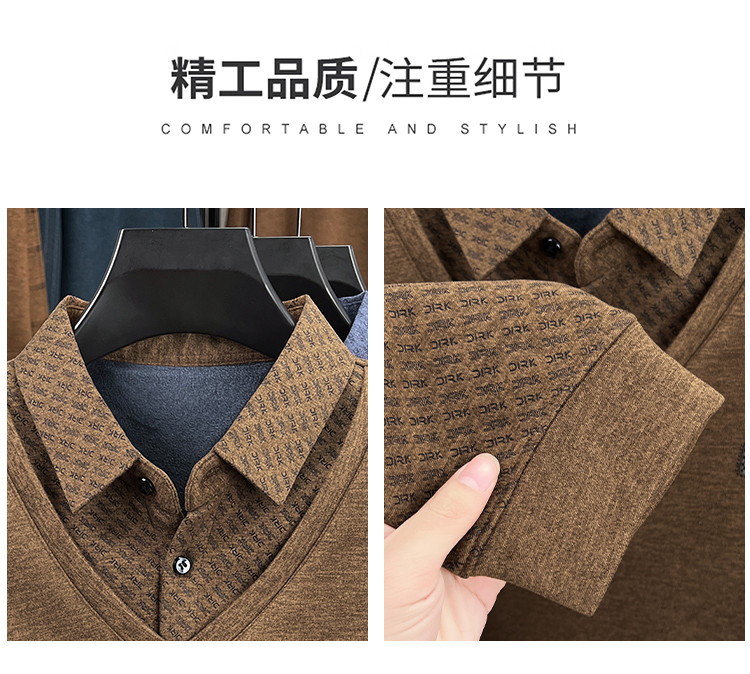 【YW】无忧购冬季加绒爸爸装加厚翻领POLO假两件保暖打底衫26145/26151(截单后3-5天发货)