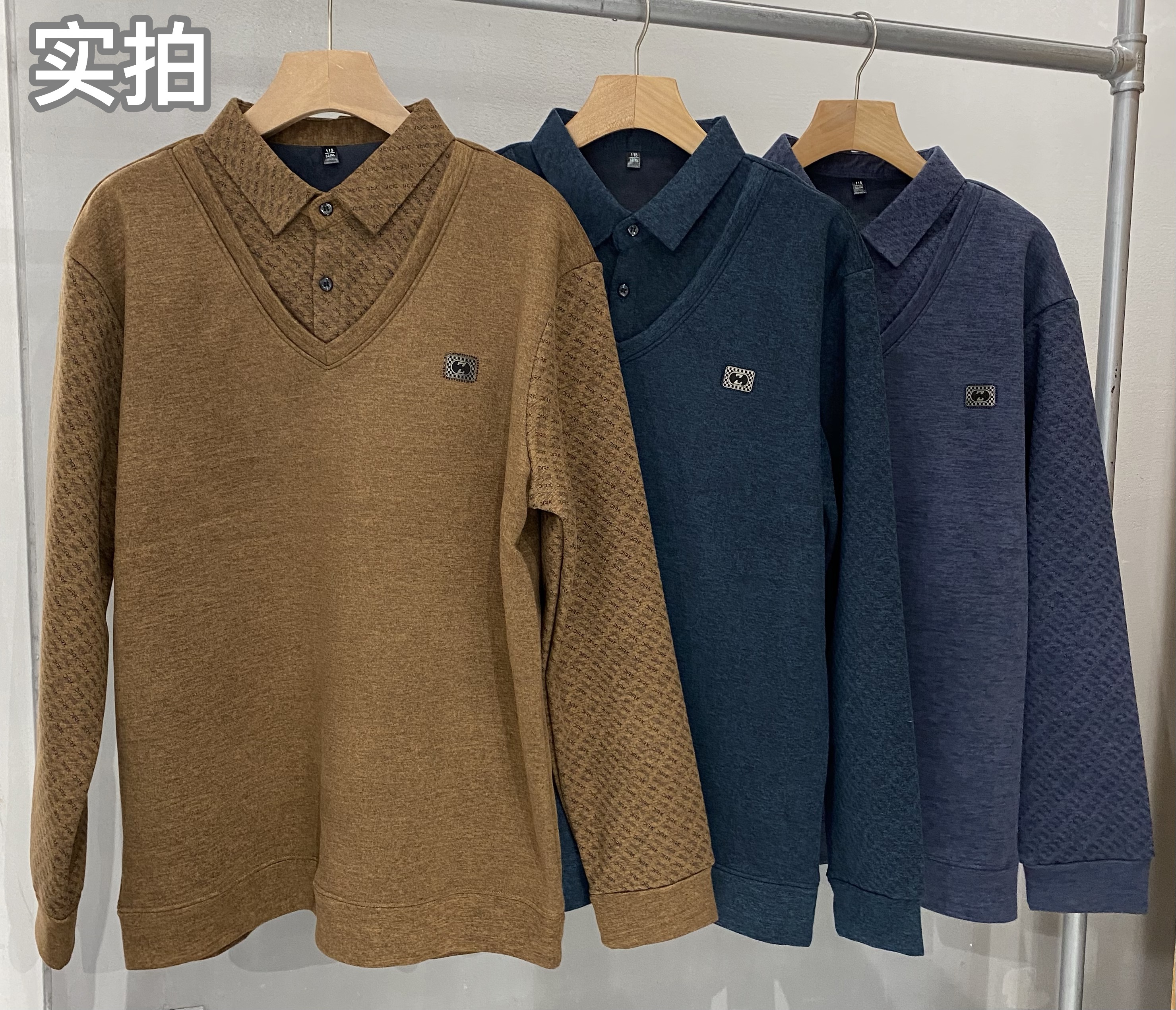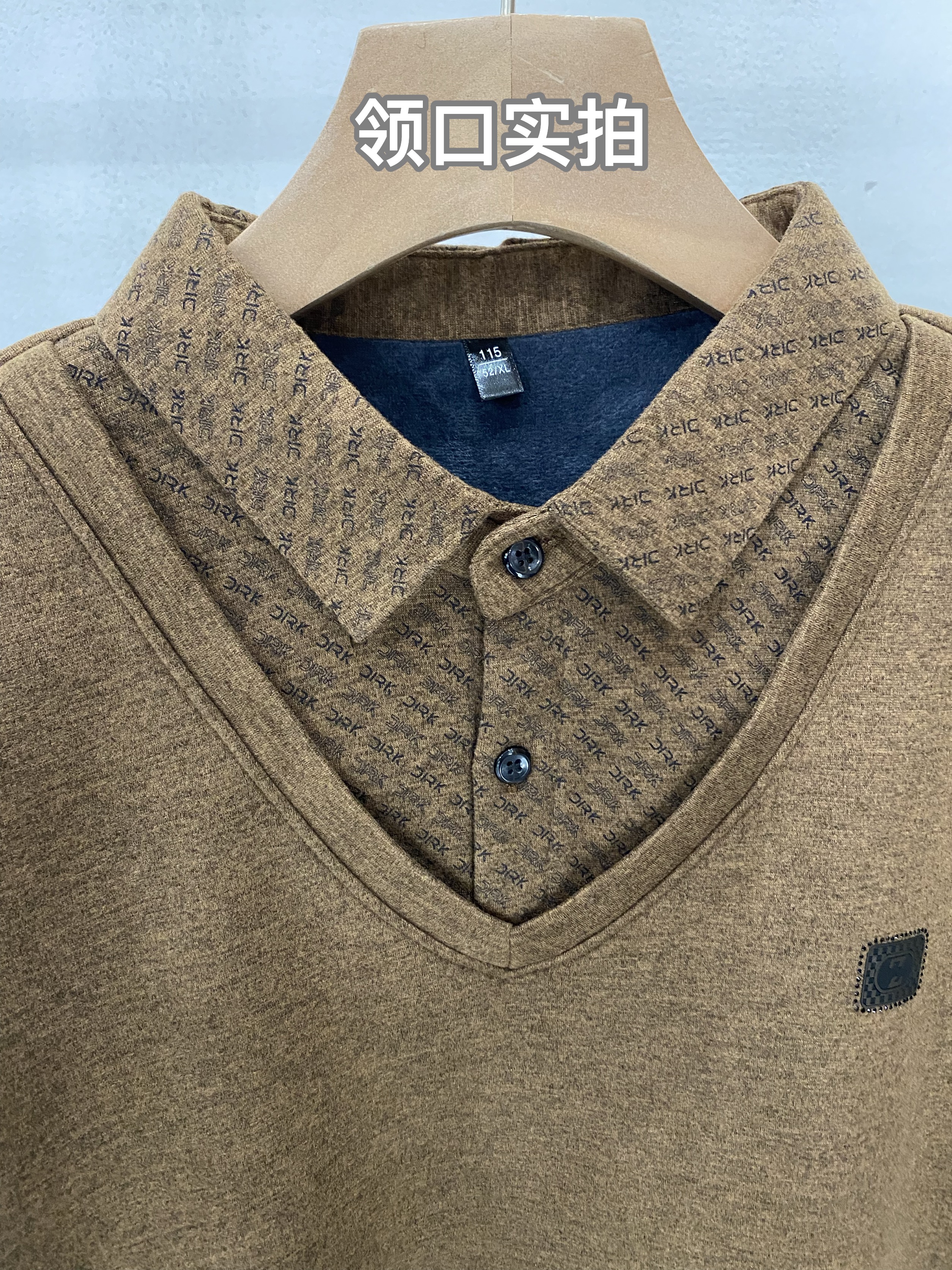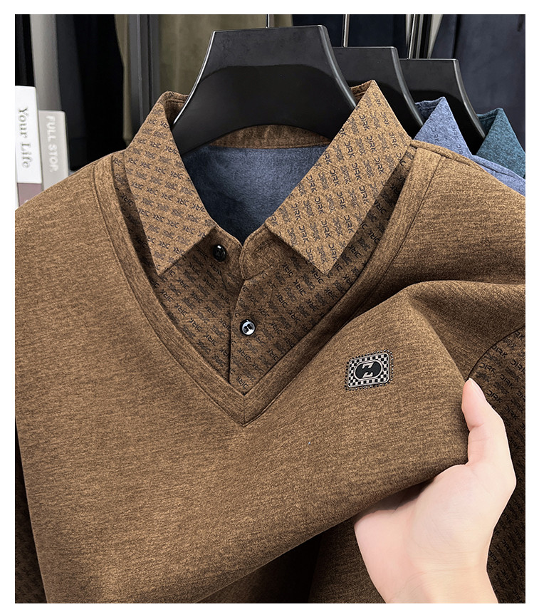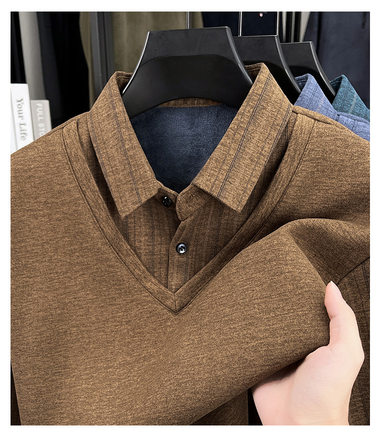【YW】无忧购冬季加绒爸爸装加厚翻领POLO假两件保暖打底衫26145/26151(截单后3-5天发货)