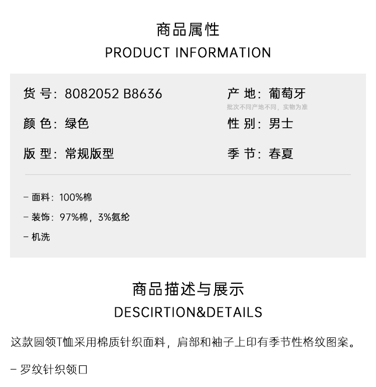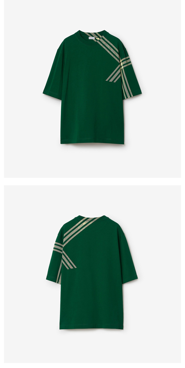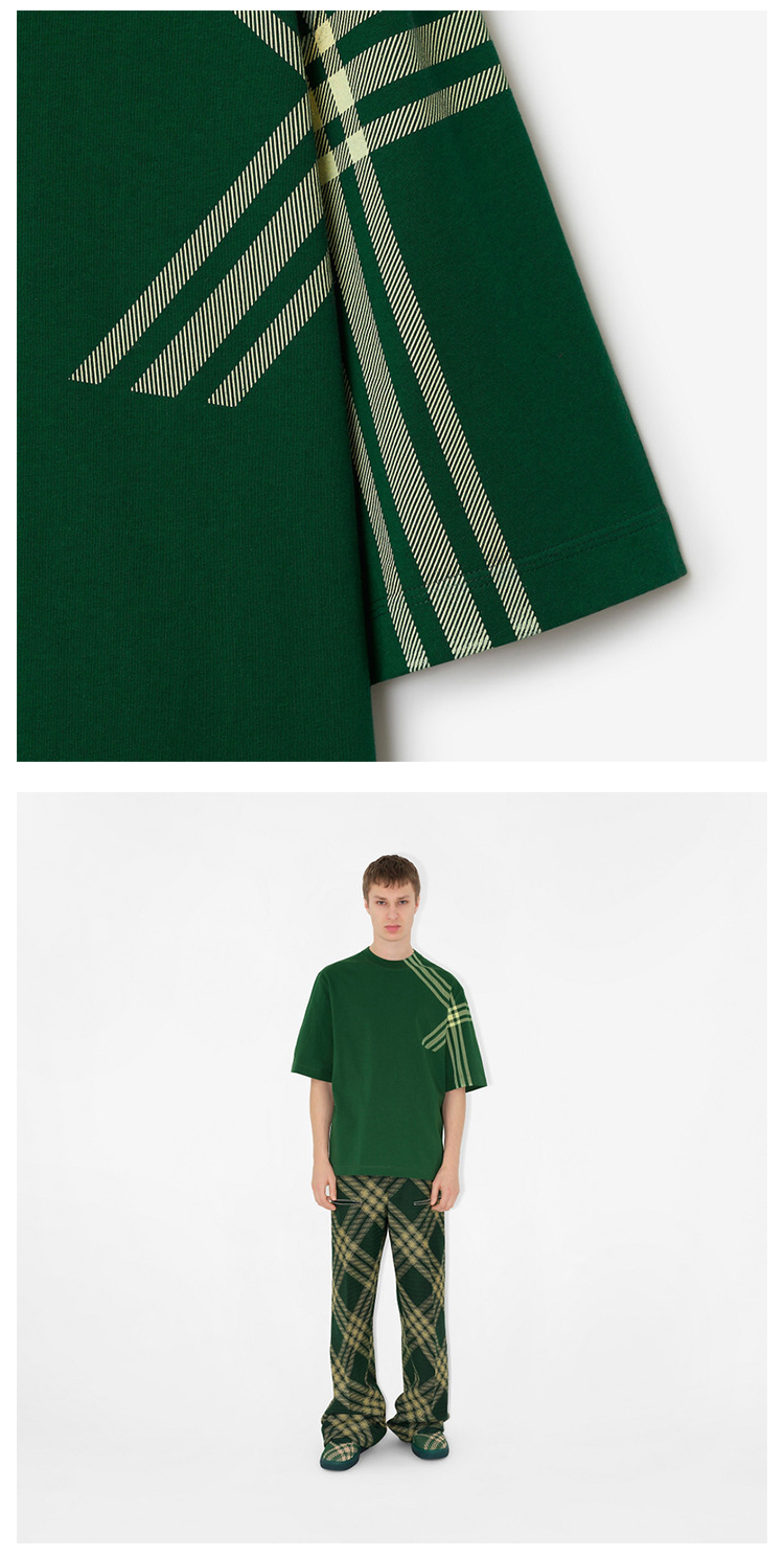 BURBERRY 巴宝莉 男士罗纹针织领口格纹衣袖棉质短袖T恤 绿色 8082052 B8636
