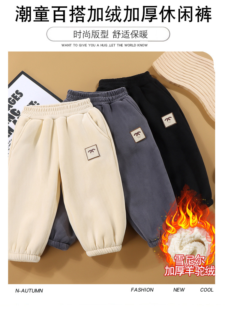 【A类秋冬加厚羊驼绒卫裤】儿童加绒裤子 男女童一体绒休闲裤雪尼尔 冬季长裤90-160cm
