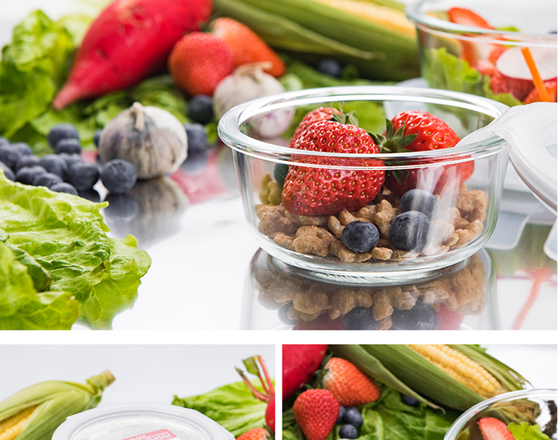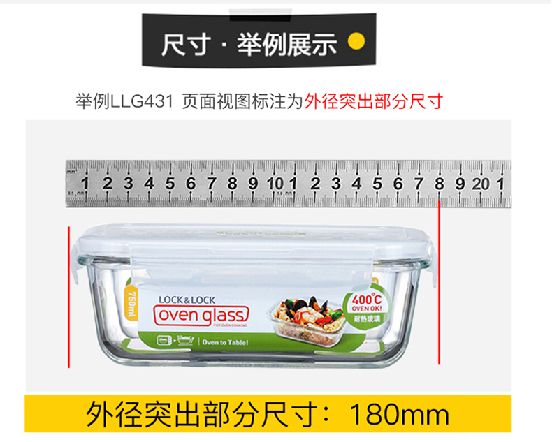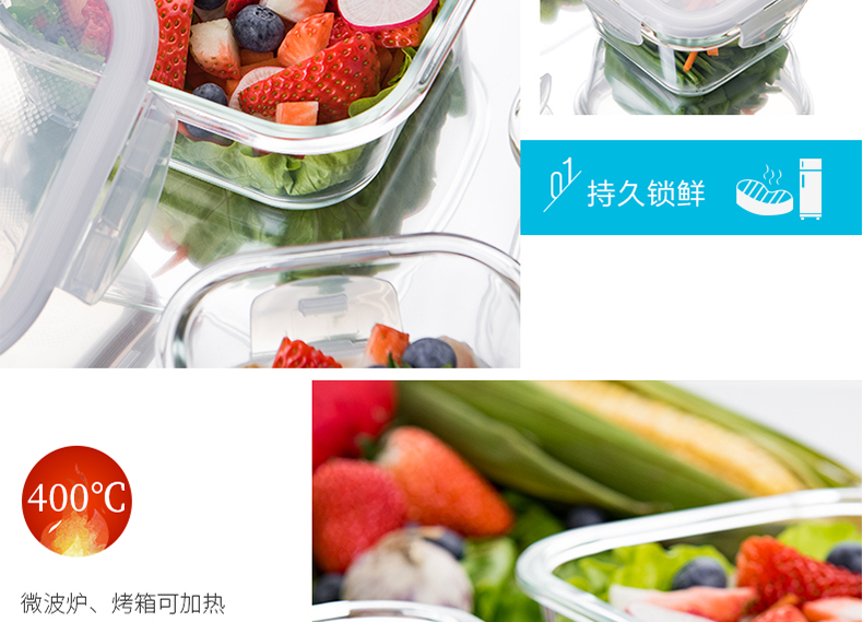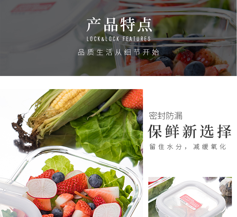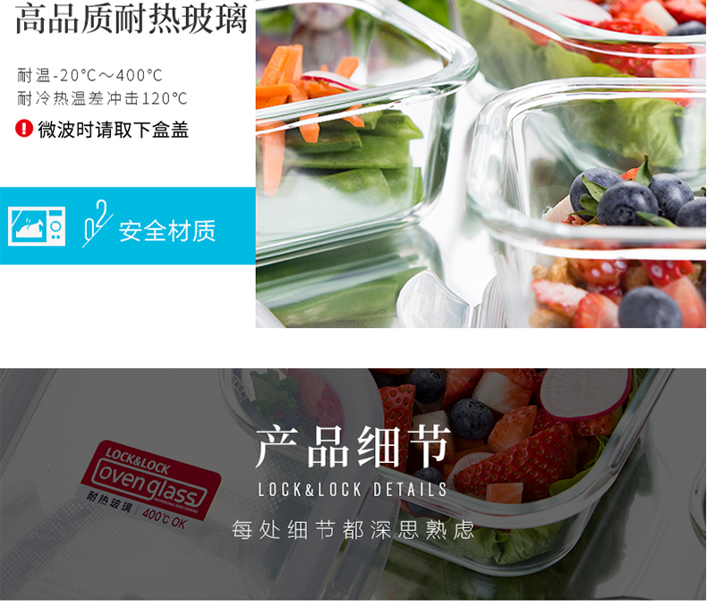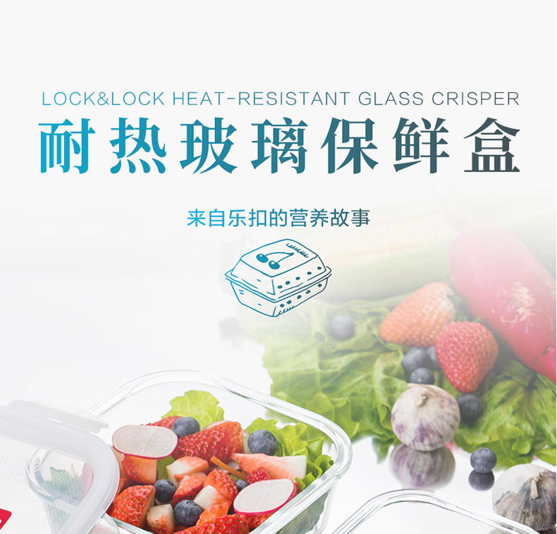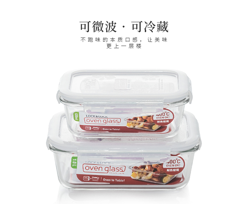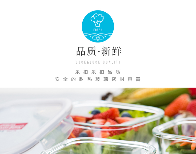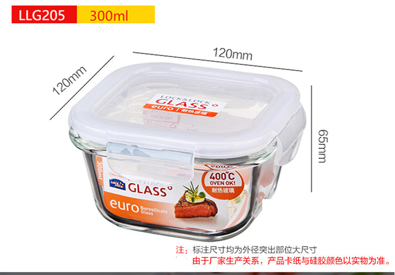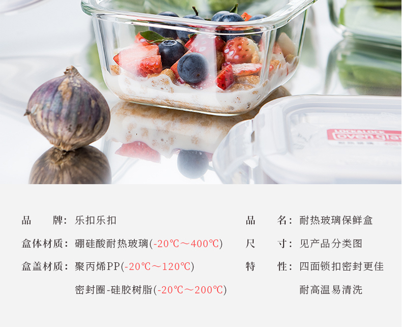 乐扣乐扣 耐热玻璃保鲜盒 小饭盒 微波炉便当盒餐盒密封食品盒水果盒零食盒 冰箱冷冻盒子 婴儿辅食盒 300ml