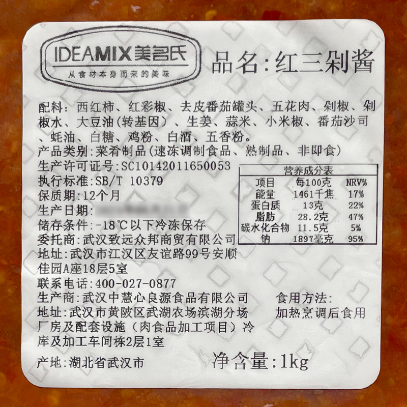 美名氏红三剁酱1kg商用云贵风味下饭菜辣椒酱调味料