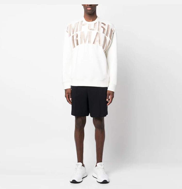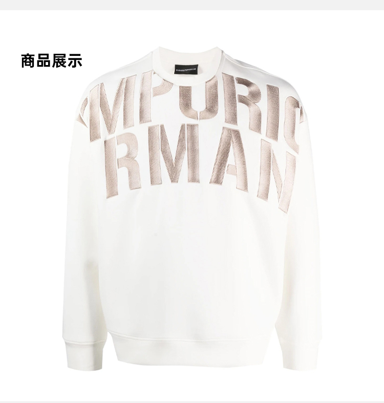 EMPORIO ARMANI 阿玛尼 男士棉质字母徽标印花圆领长袖卫衣 白色 3R1MDH 1JHSZ 01G0