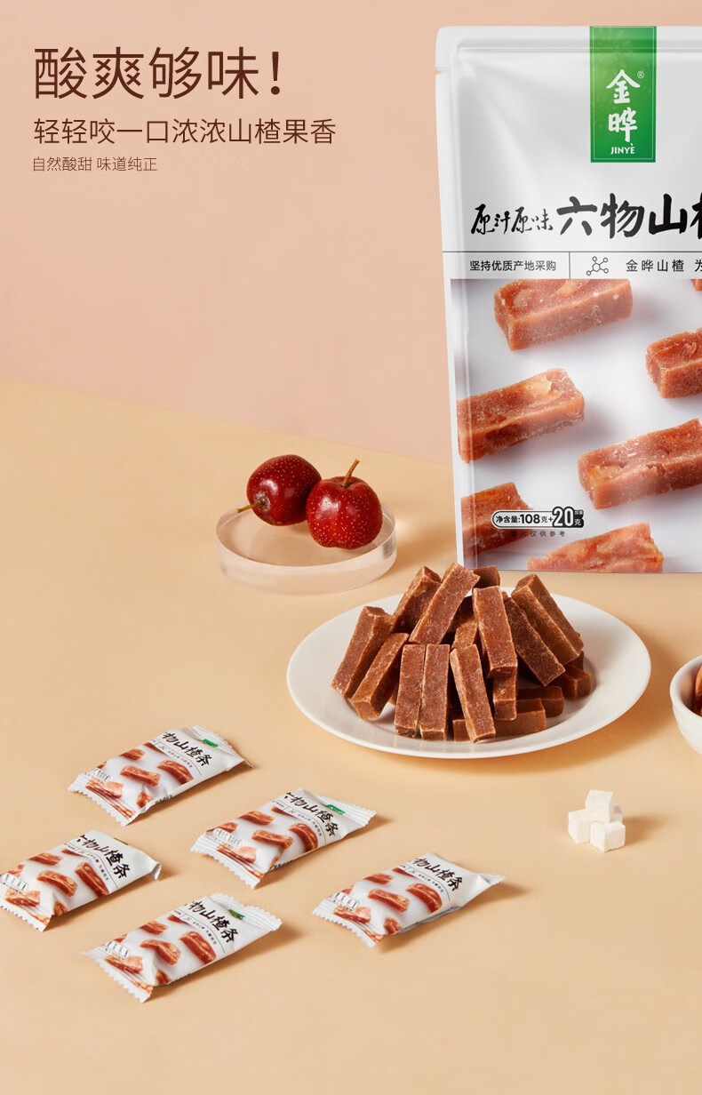 金晔六物陈皮山楂条山楂果肉108g/袋休闲办公零食山楂块糕独立包装 六物陈皮山楂条108g