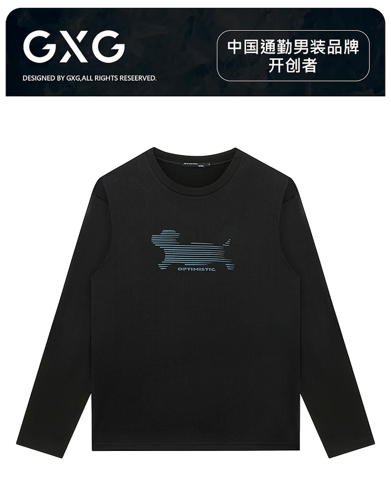 GXG男装【100%棉】秋季卡通简笔小狗圆领休闲男式长袖T恤K&C