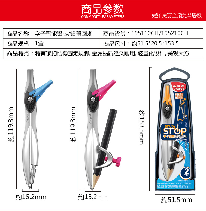 马培德学子智能铅芯圆规195110